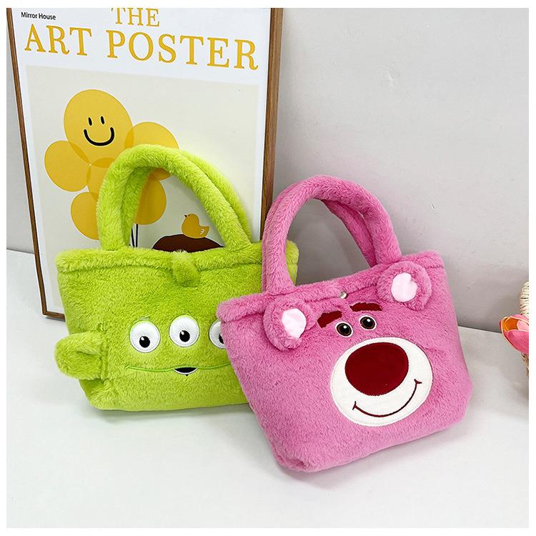 批发卡通草莓熊毛绒手提包可爱公仔玩偶儿童包包女伴手礼物手提袋
