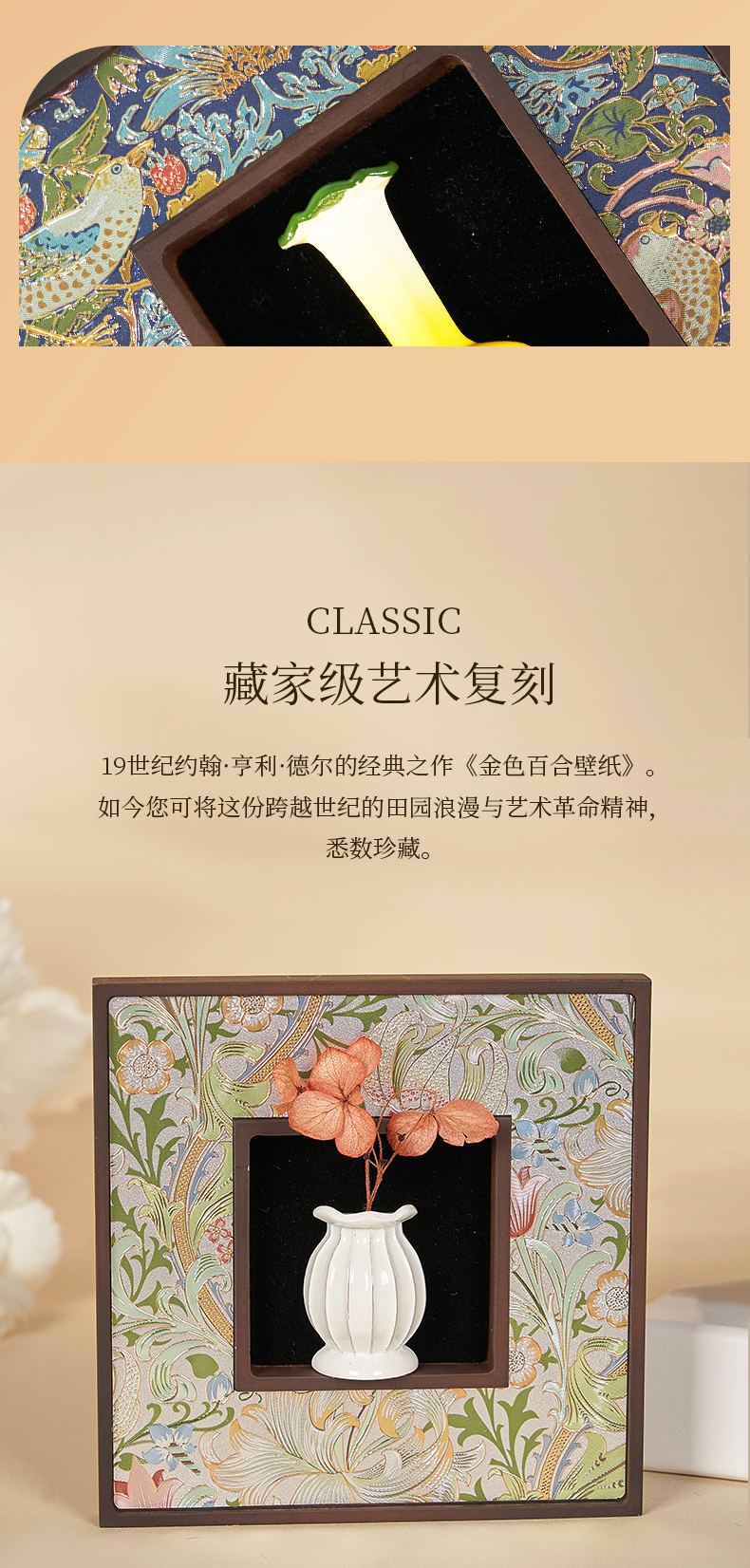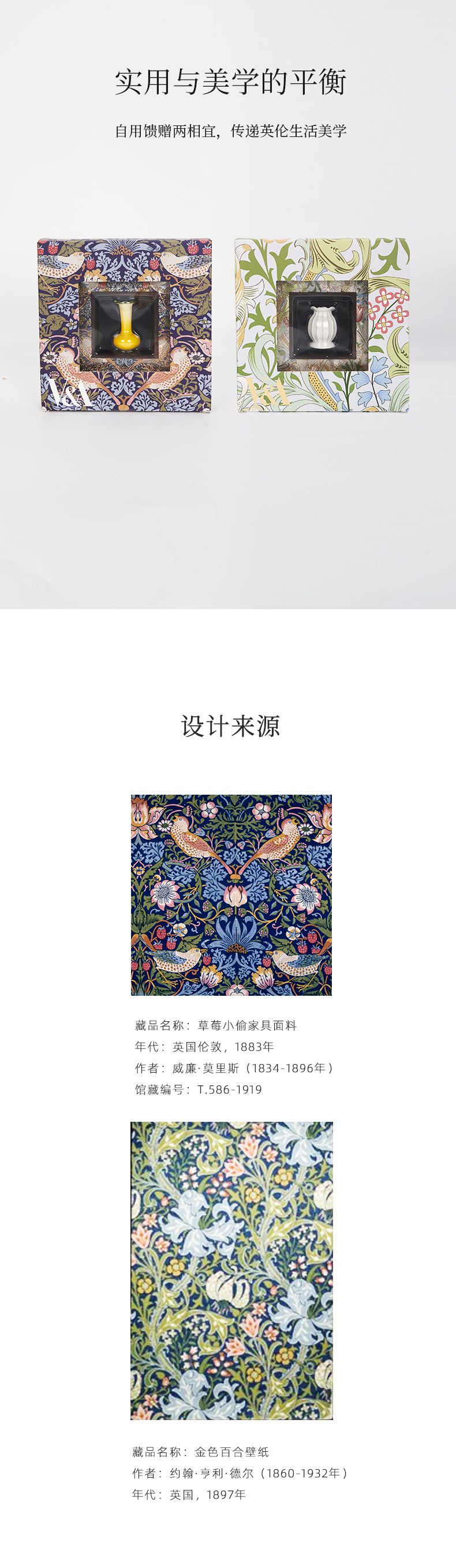 V&A博物馆威廉莫里斯系列 草莓小偷莓好瞬间 金色百合合你心艺 木质画框冰箱贴