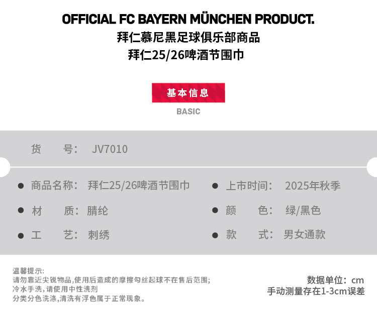 【官网同款】拜仁足球俱乐部丨25-26赛季啤酒节围巾球迷配饰周边