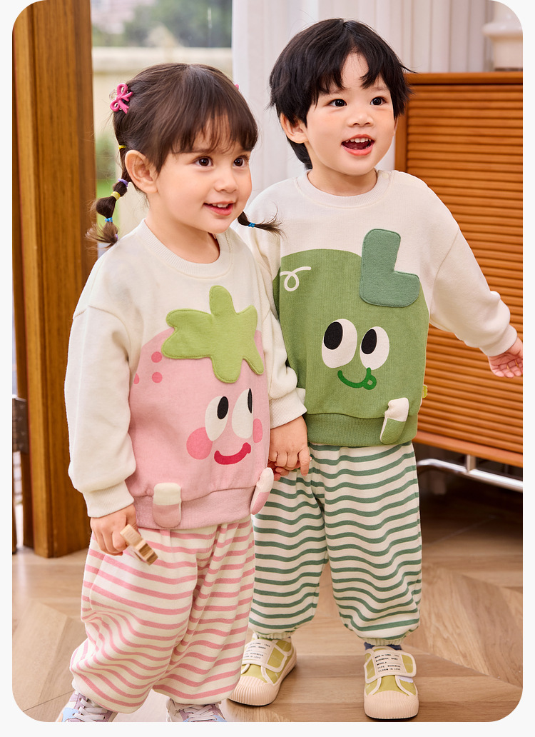 【萌趣卡通】嘟嘟家宝宝套装春季新款男童卫衣裤子春装女童两件套