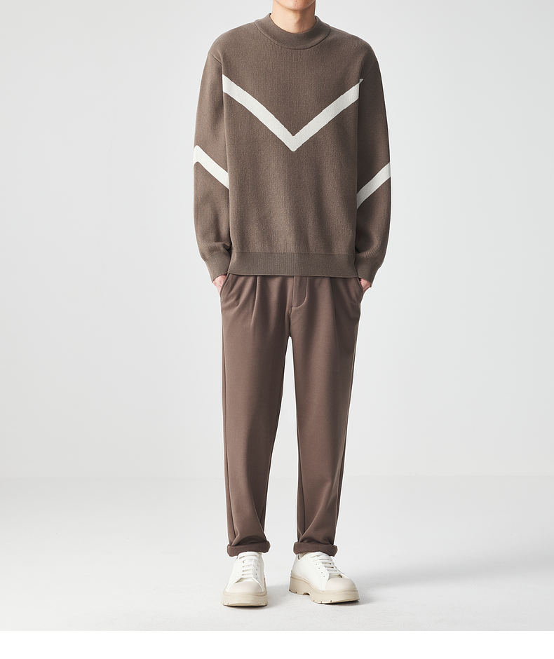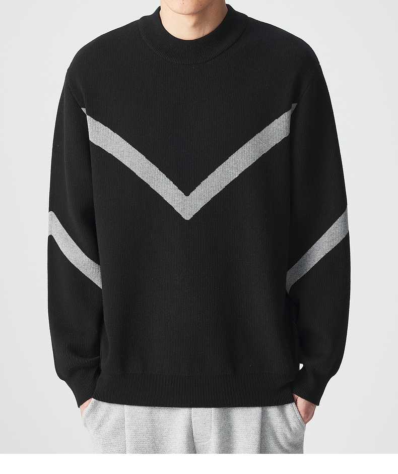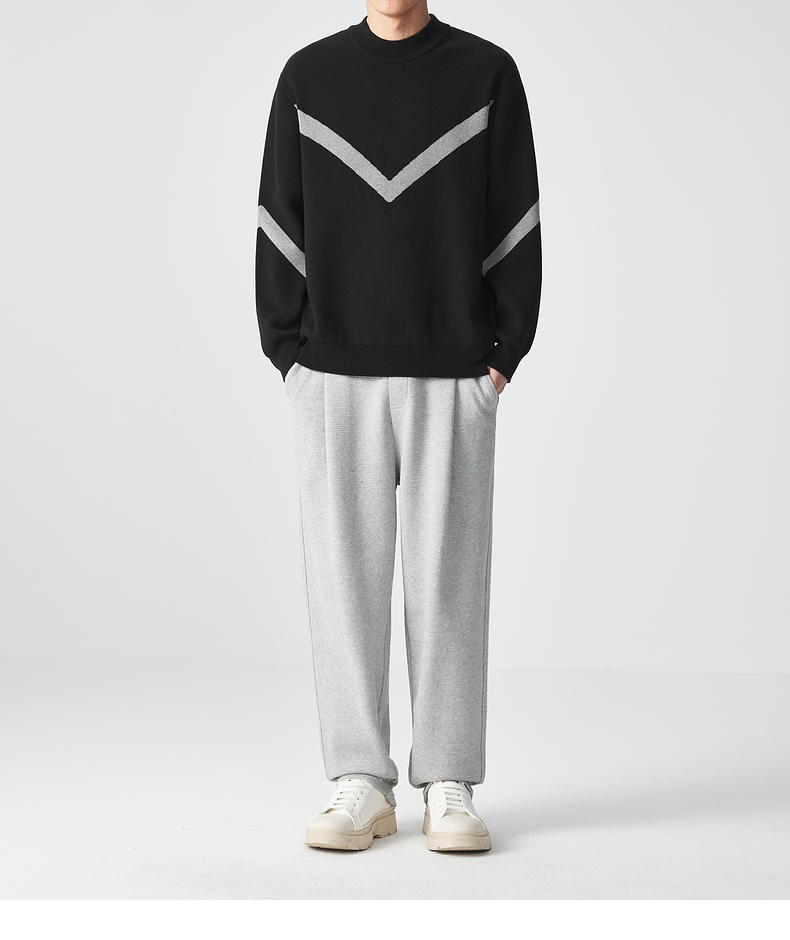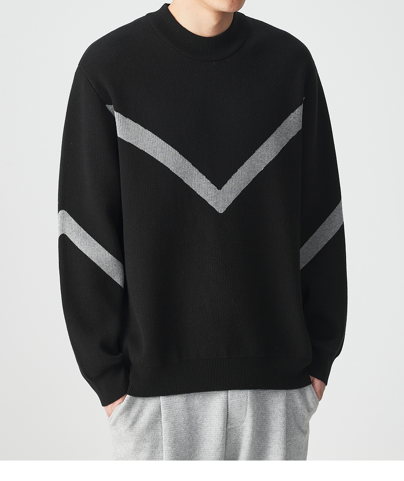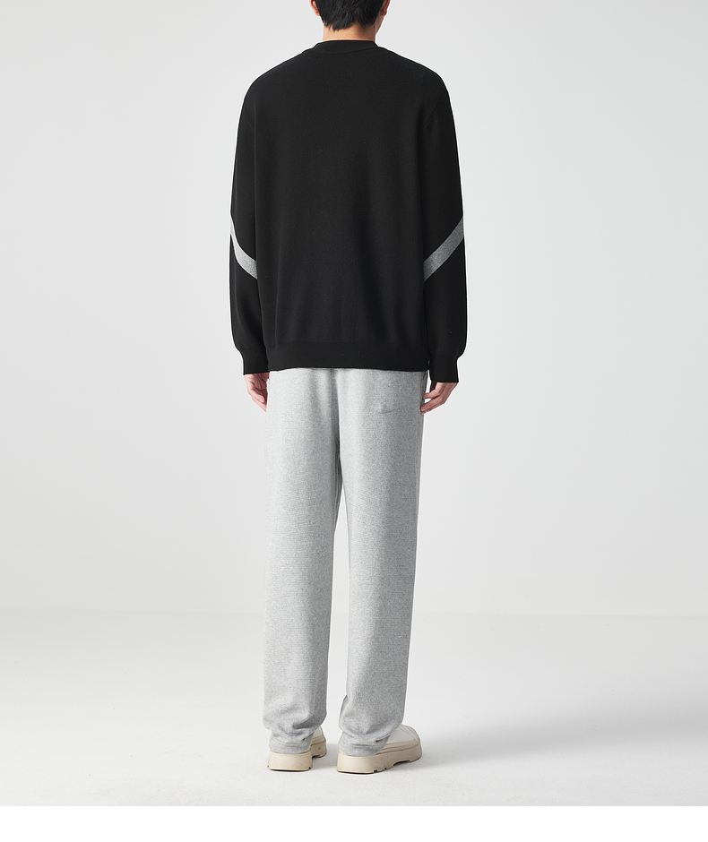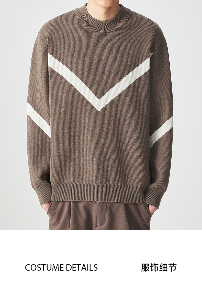 墨麦客 远红外升温 男士圆领针织衫冬季新款锁温保暖撞色毛衣男潮
