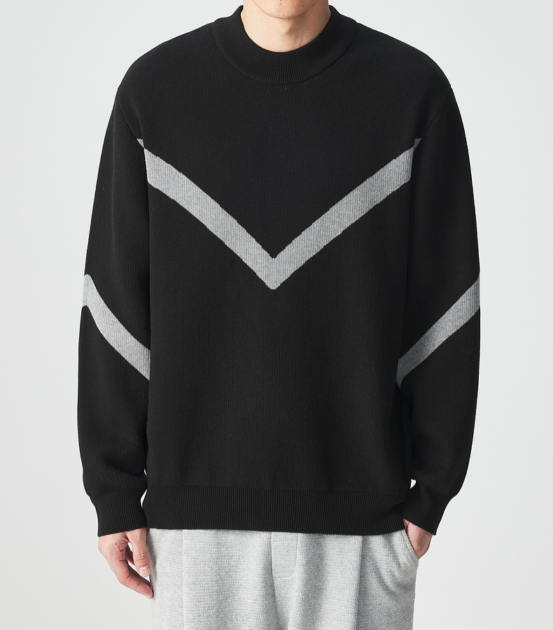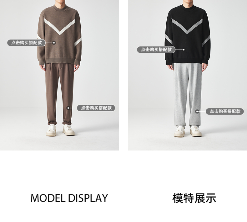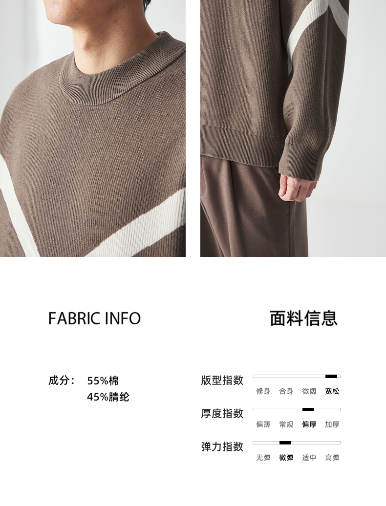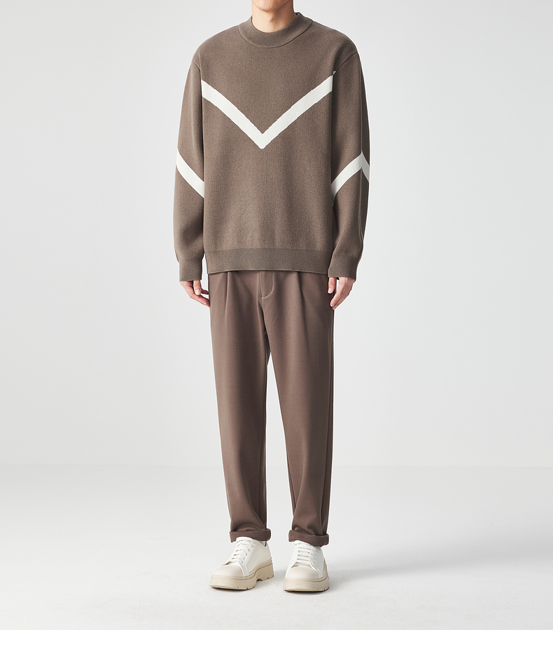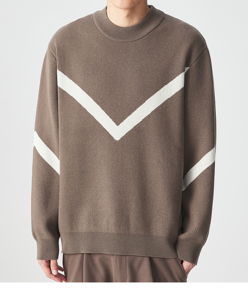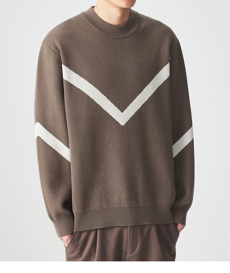 墨麦客 远红外升温 男士圆领针织衫冬季新款锁温保暖撞色毛衣男潮