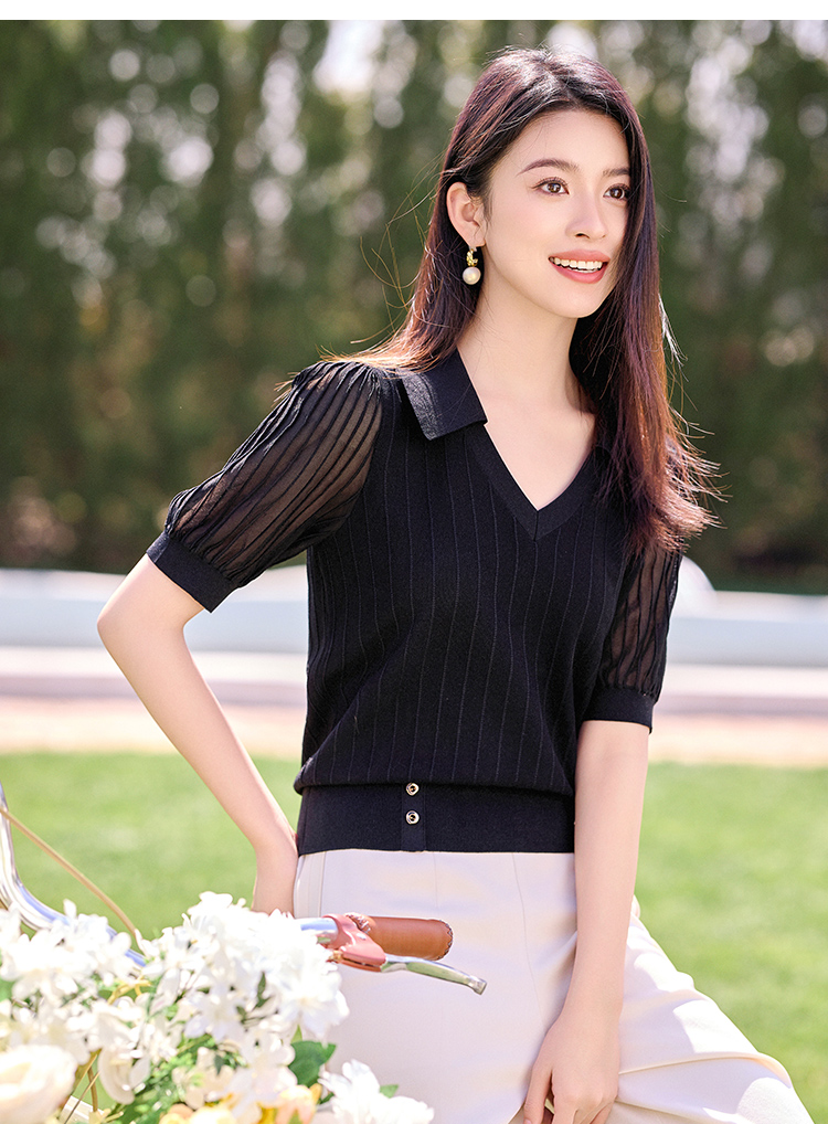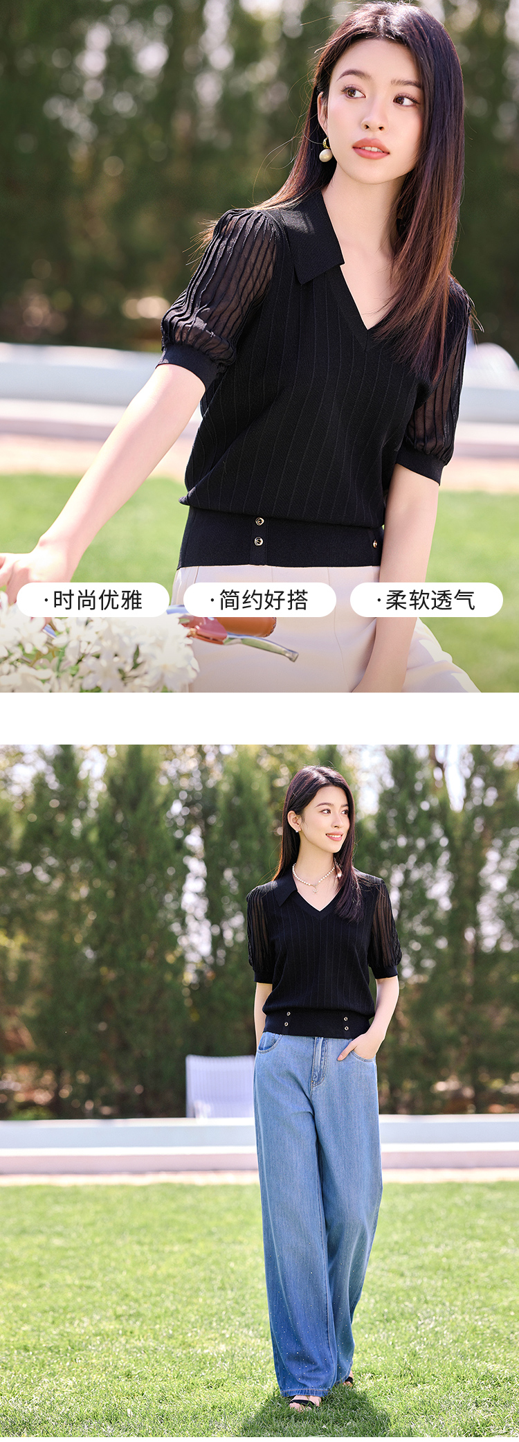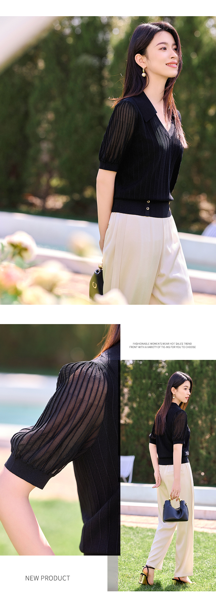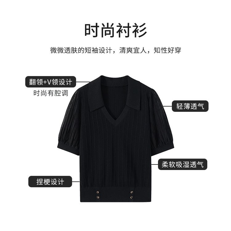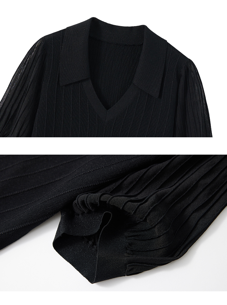 【商场同款】CJKJ501 “ 精美针织衫 ” 简约百搭黑色 腰封设计,巧妙提升腰线 灯笼袖缩窄肩宽 打造直角肩好穿显瘦 肌理感丰富微透的袖子 更有知性感