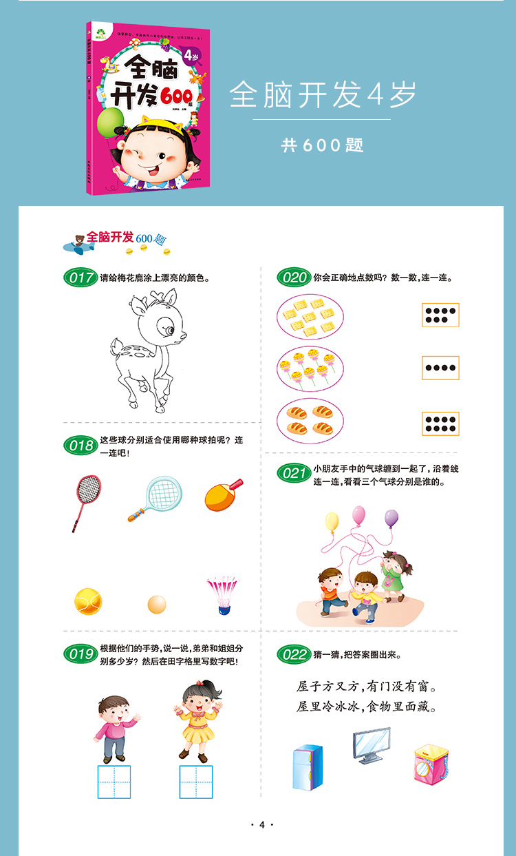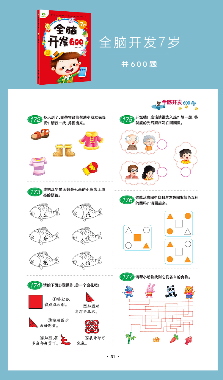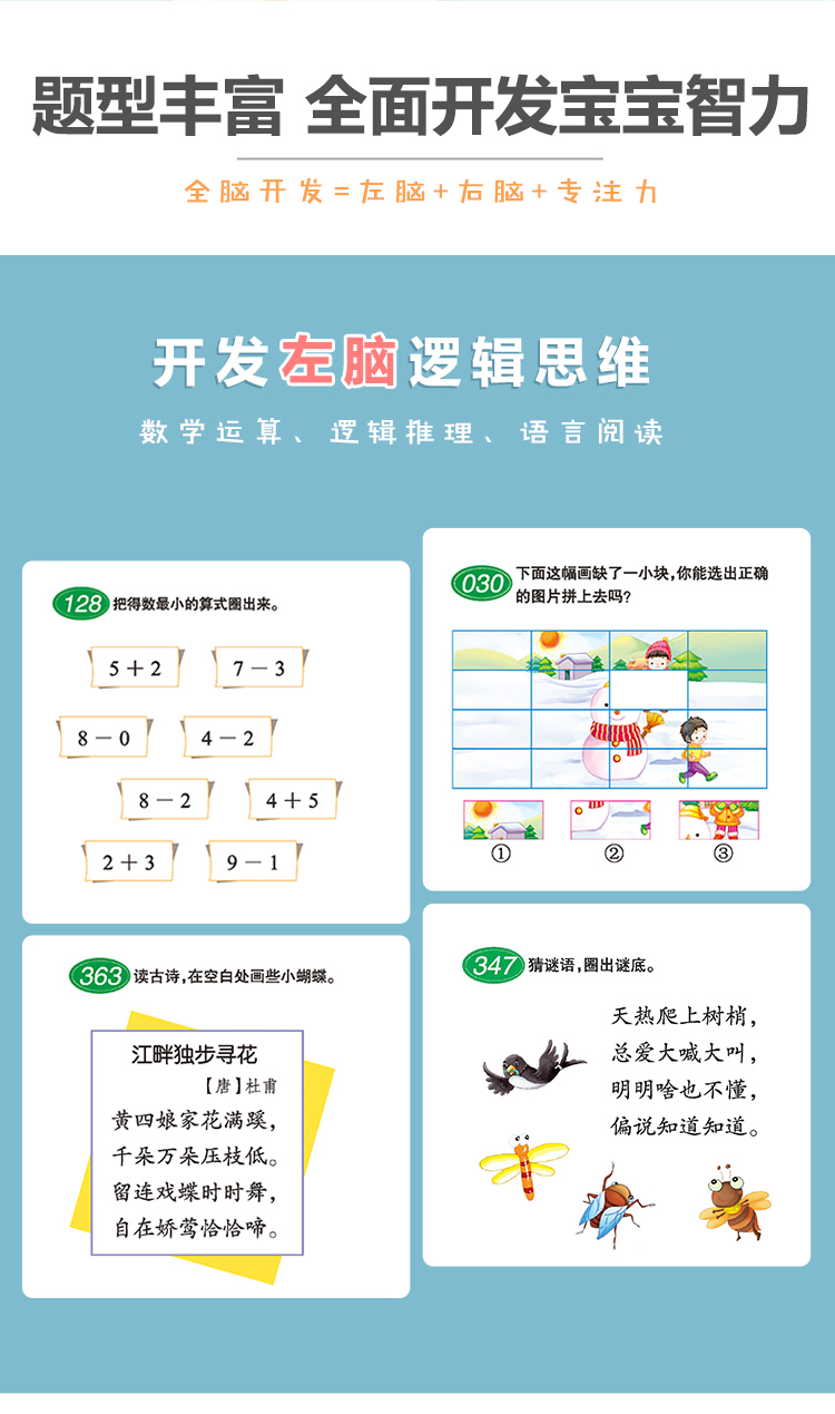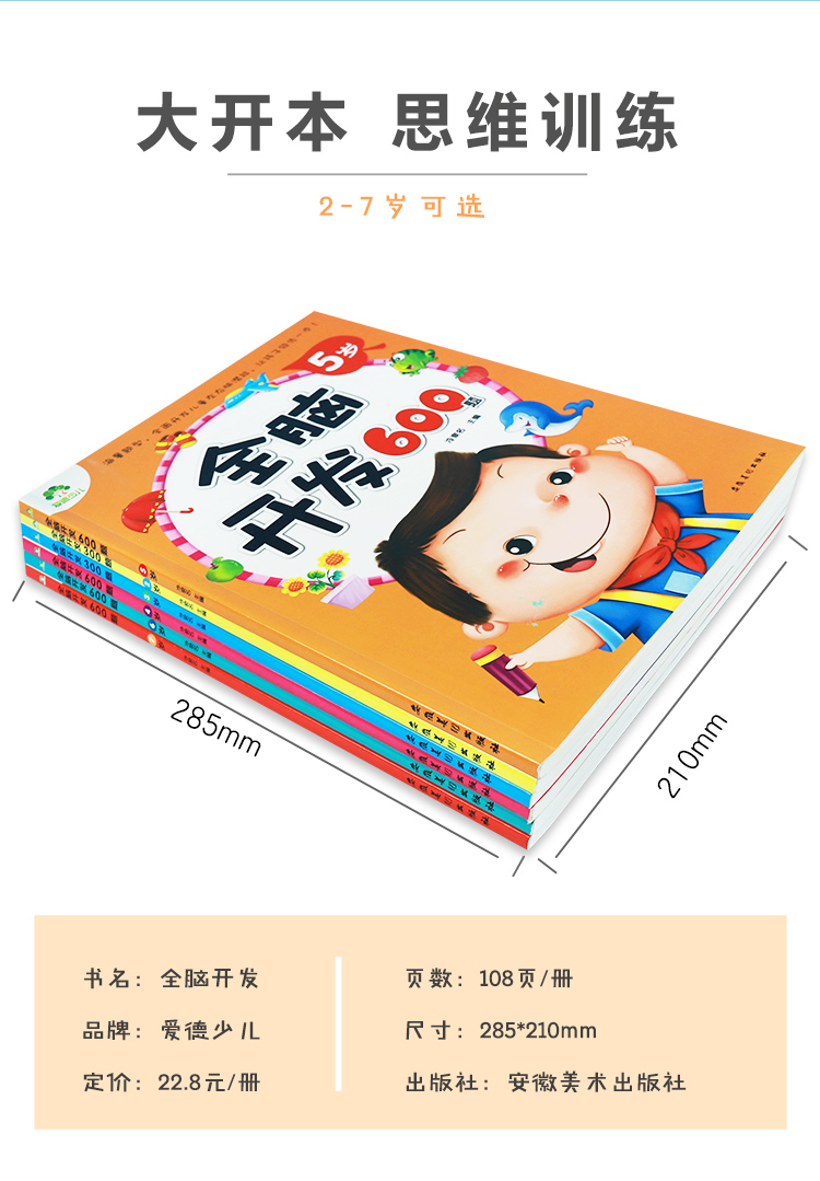 爱德少儿 全脑开发600题 2-7岁儿童思维训练左右脑潜能开发逻辑思维训练书