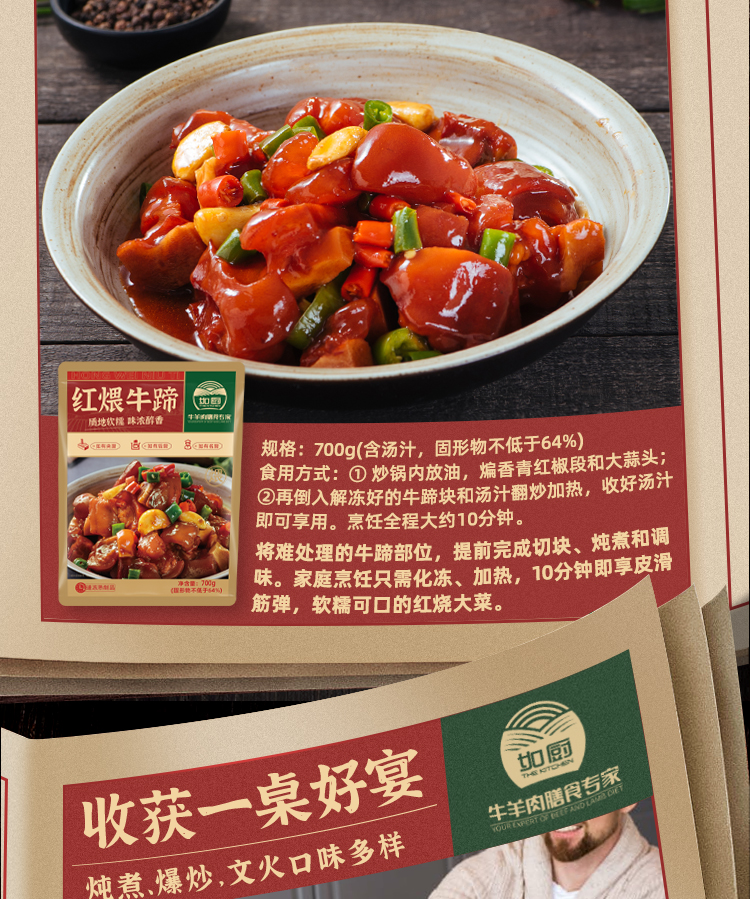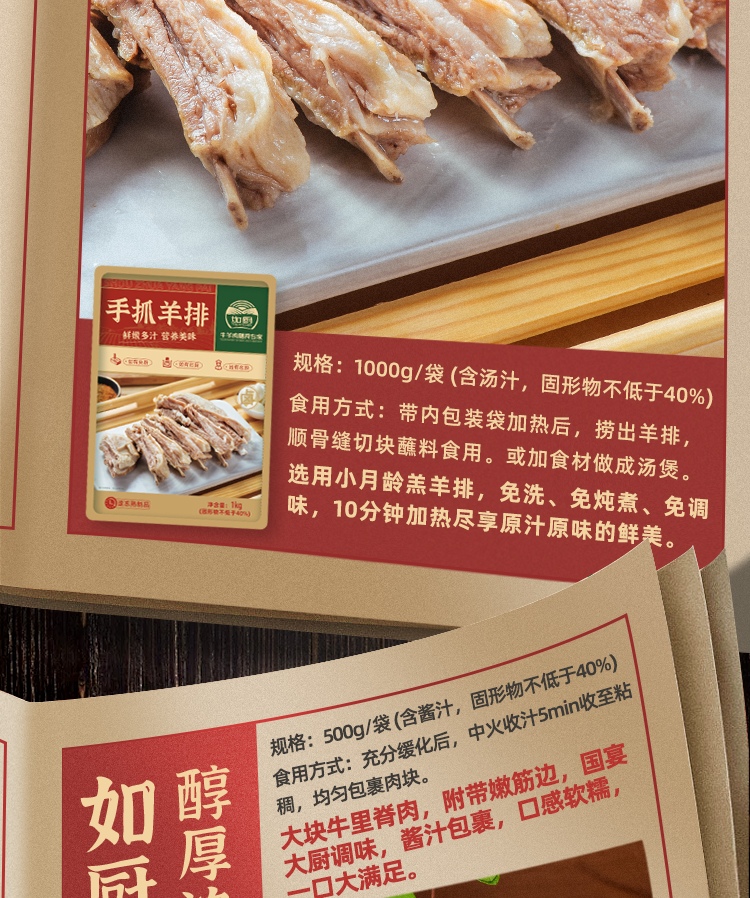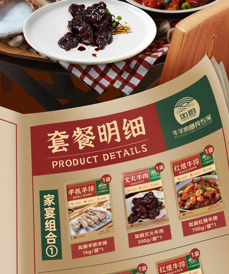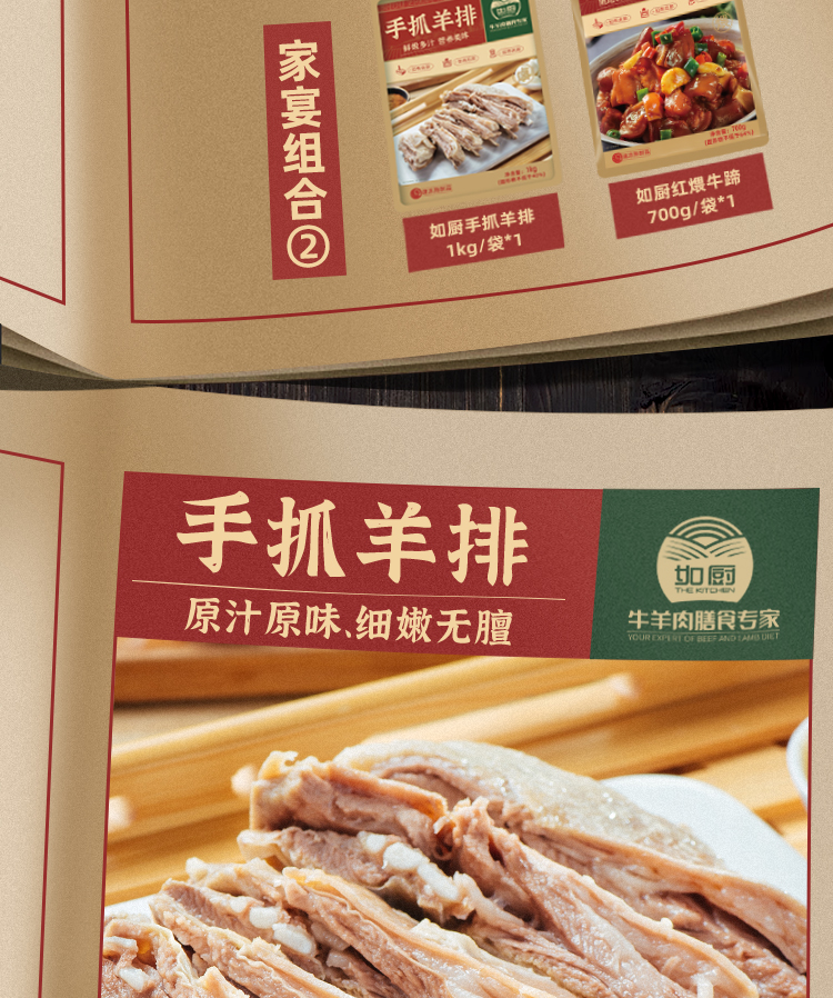 【非礼盒装】三种菜品组合1.7kg 手抓羊肉,红煨牛蹄,文火牛肉 零下18度冷冻储存 如康