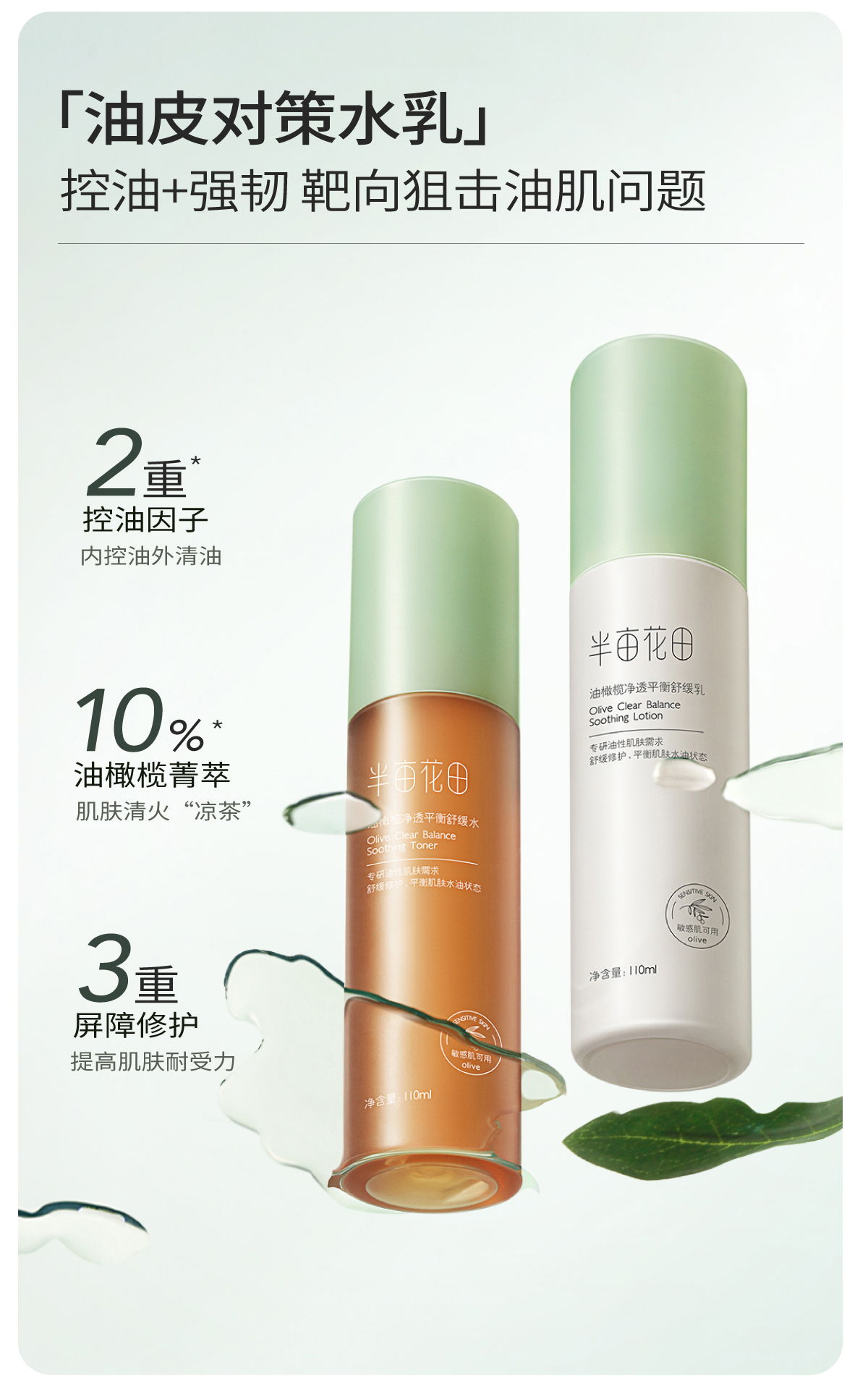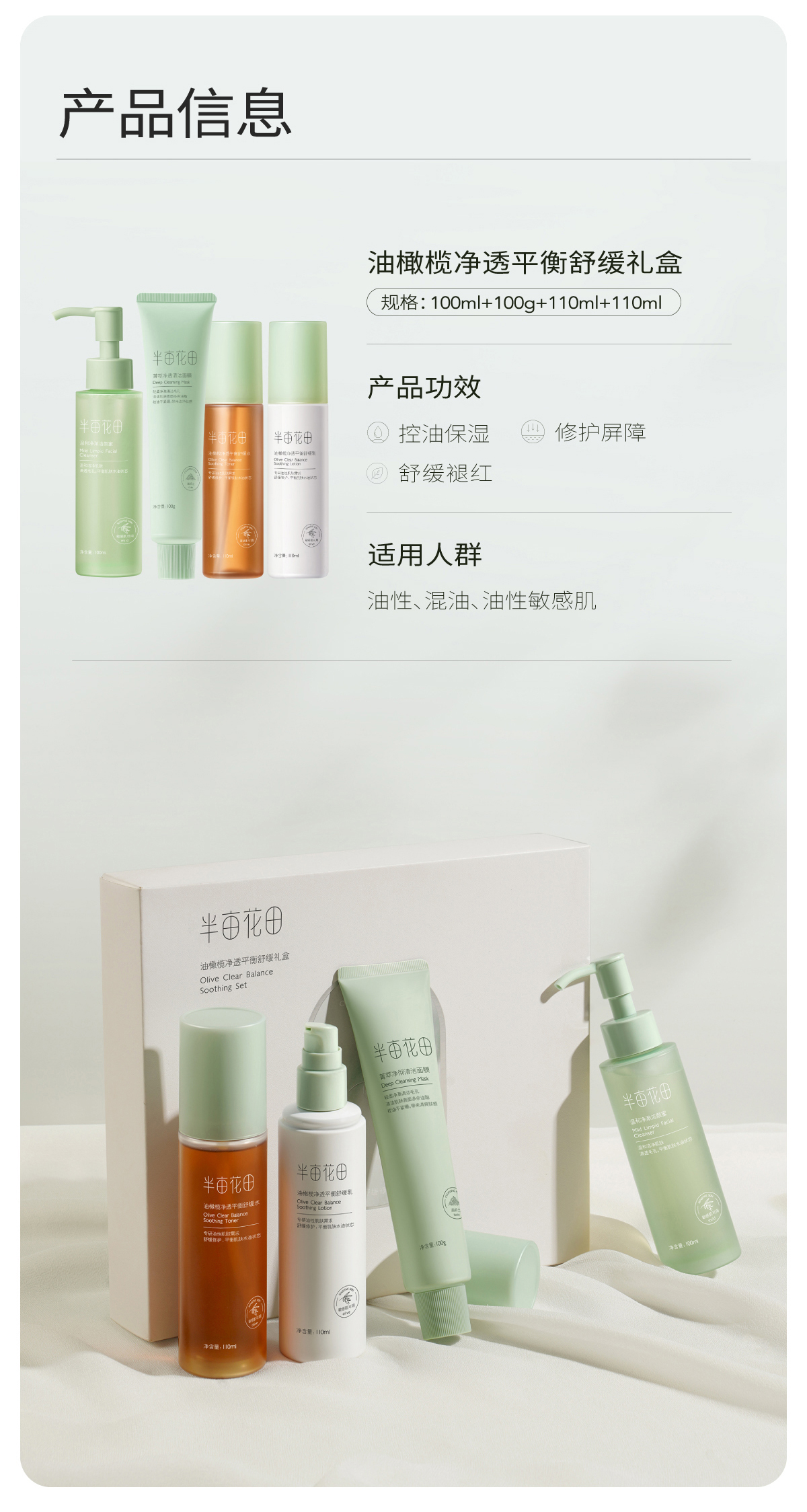 【最后库存❗效期到26年8月介意勿拍】【油皮/混油肌必入】半亩花田油橄榄水乳套装(4件套)油敏肌混油皮水乳舒缓控油补水保湿男女