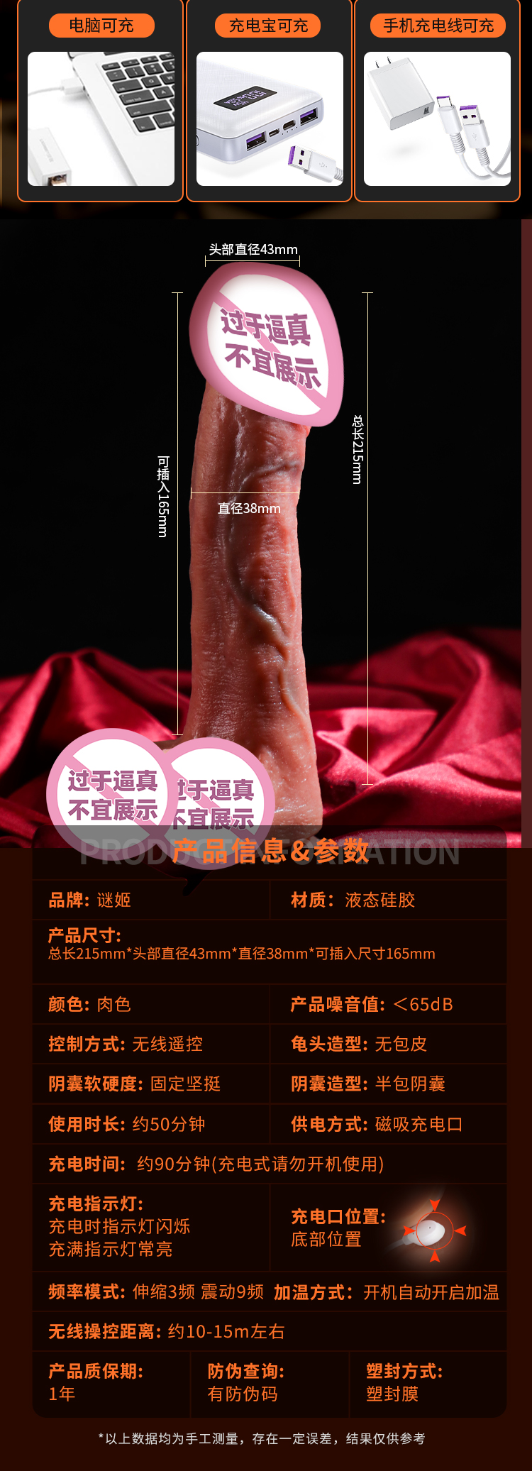 谜姬 赤焰野马阳具无线伸缩摇摆震动加温 震动棒女用自慰器成人情趣用品 无线伸缩摇摆震动加温阳具