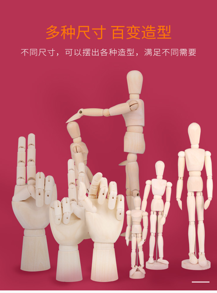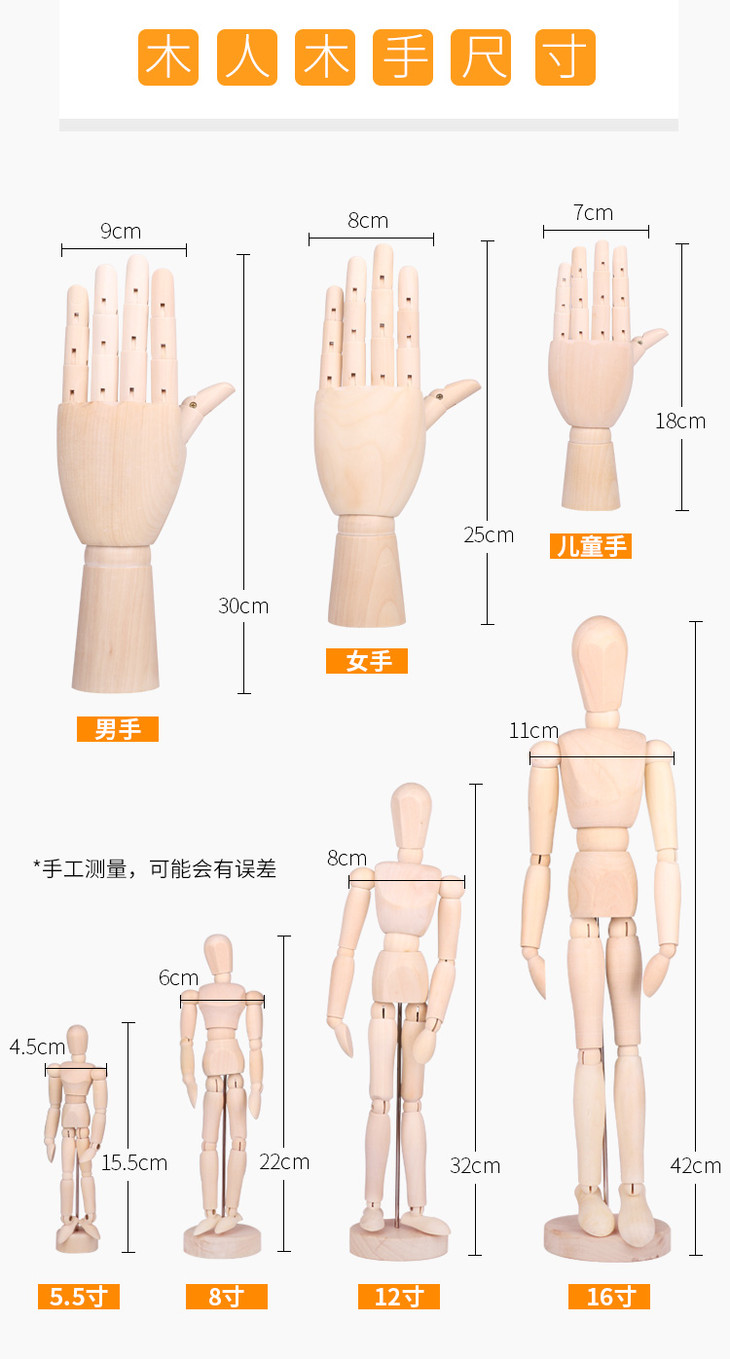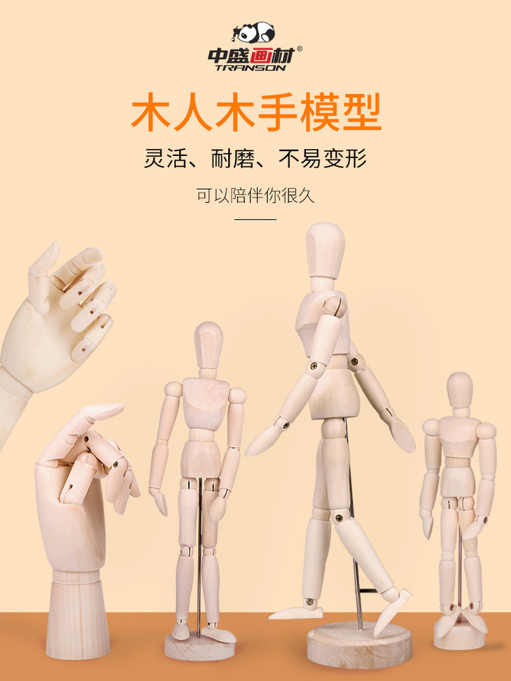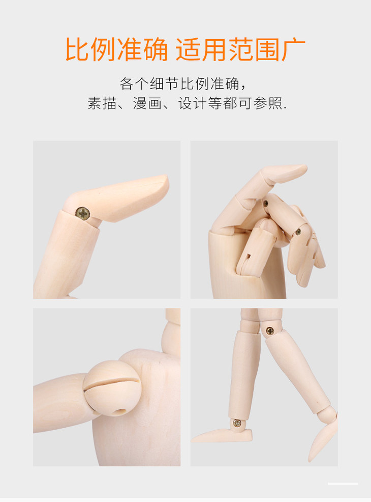 漫画12寸木人模型木头人30cm素描素材木偶人关节人偶木手冯起红