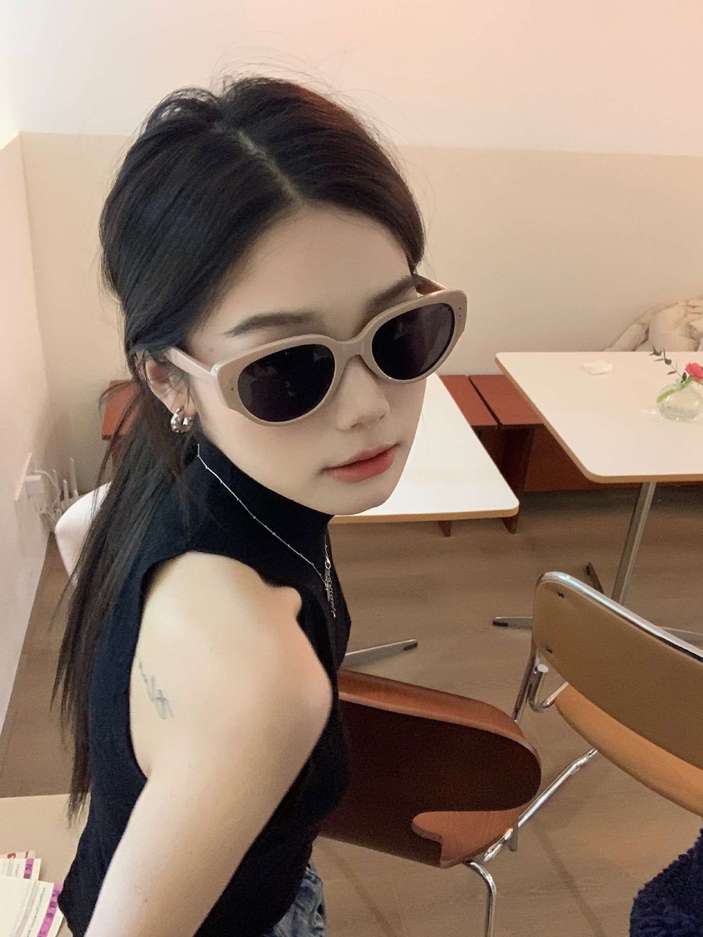 【潮爆ins!美式复古墨镜】2023复古美式猫眼墨镜,女偏光防紫外线防晒,街拍凹造型椭圆形太阳眼