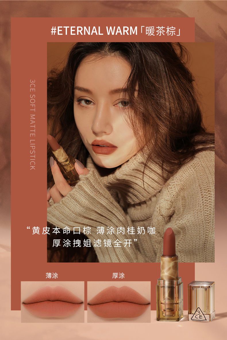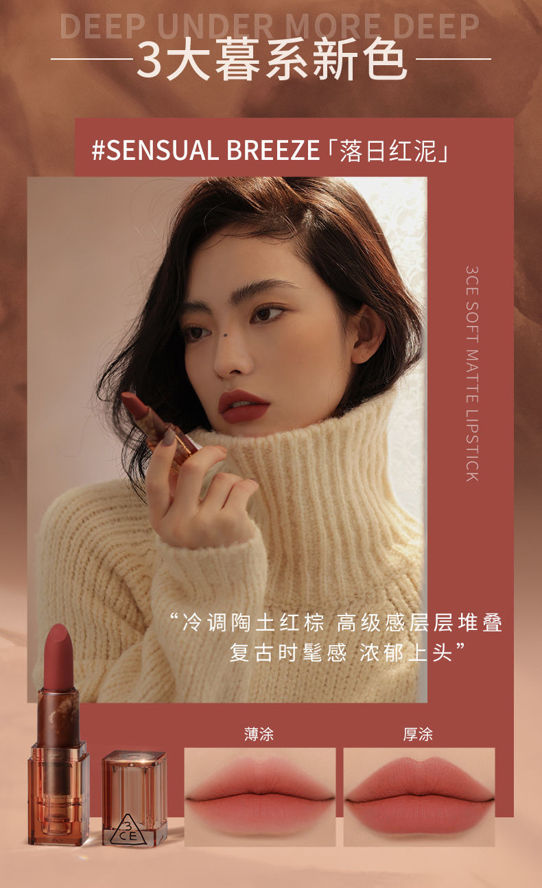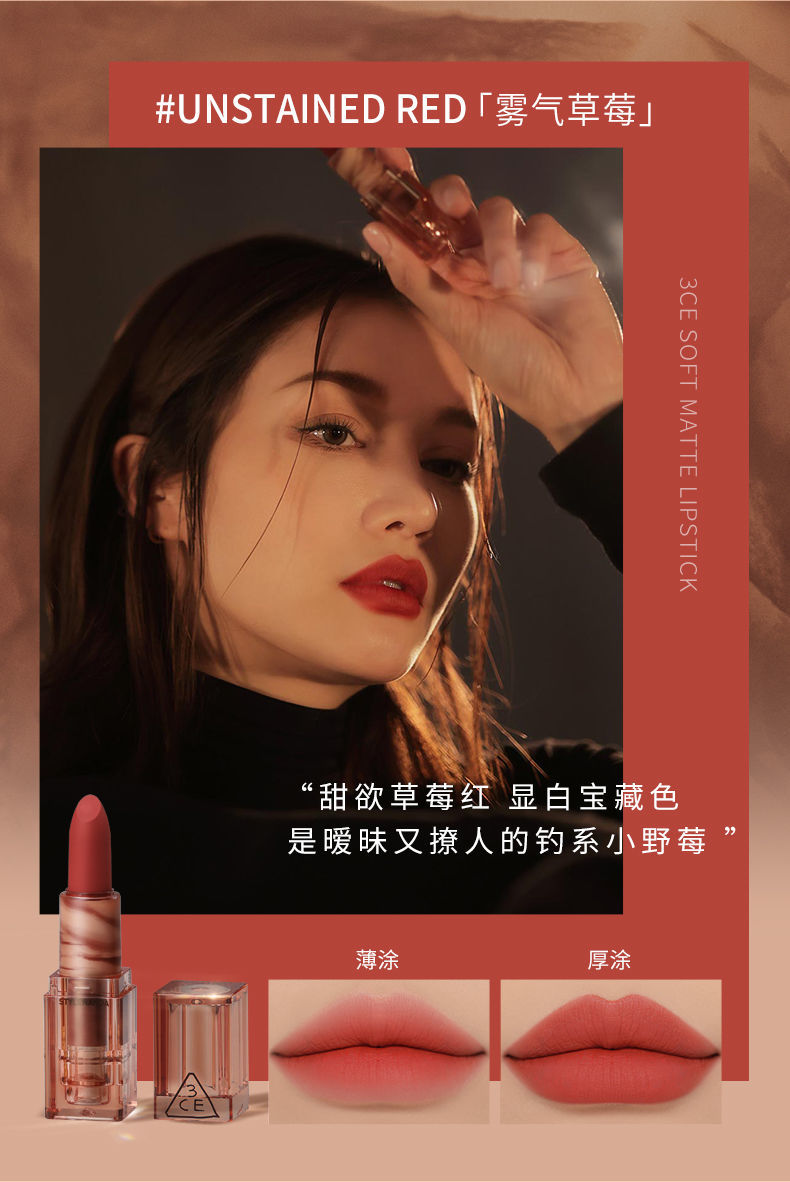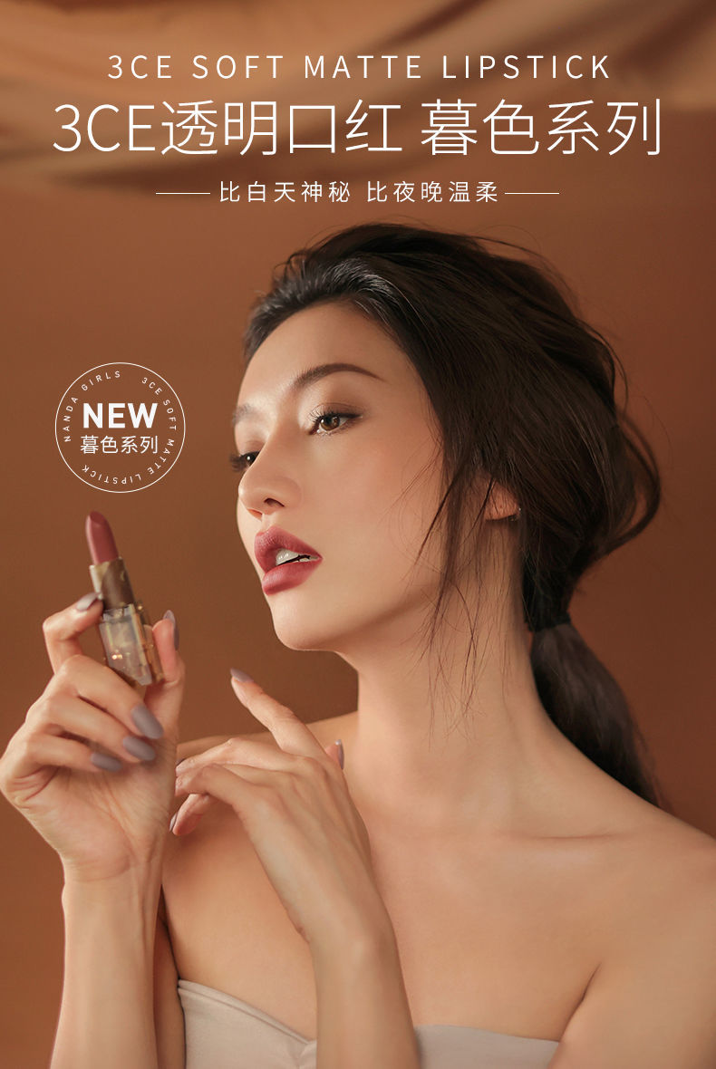 【预售 急单慎拍】3CE口红透明壳小冰块水波纹琥珀暮色慕唇膏哑光蜜桃奶油杏色烟管