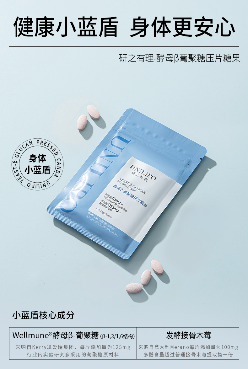 ⁶【研知有理β葡聚糖】每粒125mgWellmune专利酵母β葡聚糖+112.5mg接骨木莓 草莓味咀嚼片 3岁以上可吞服既可服用 30粒/袋 SS06-QTT-YZYL