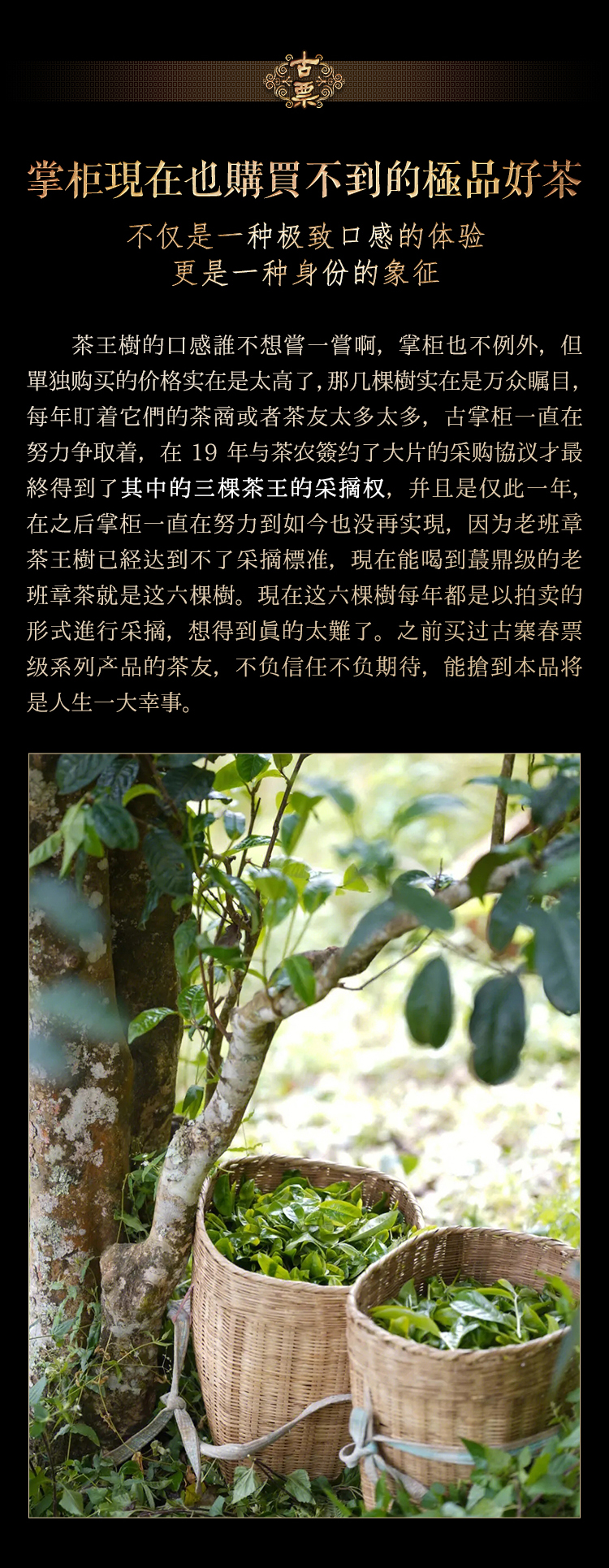 【古票】茶界奢品2019年备选茶王树制作而成,茶王树仅采市面上蕞好的老班章,现在都是在拍卖出售根本买不到的稀世珍品掌柜压箱底好茶