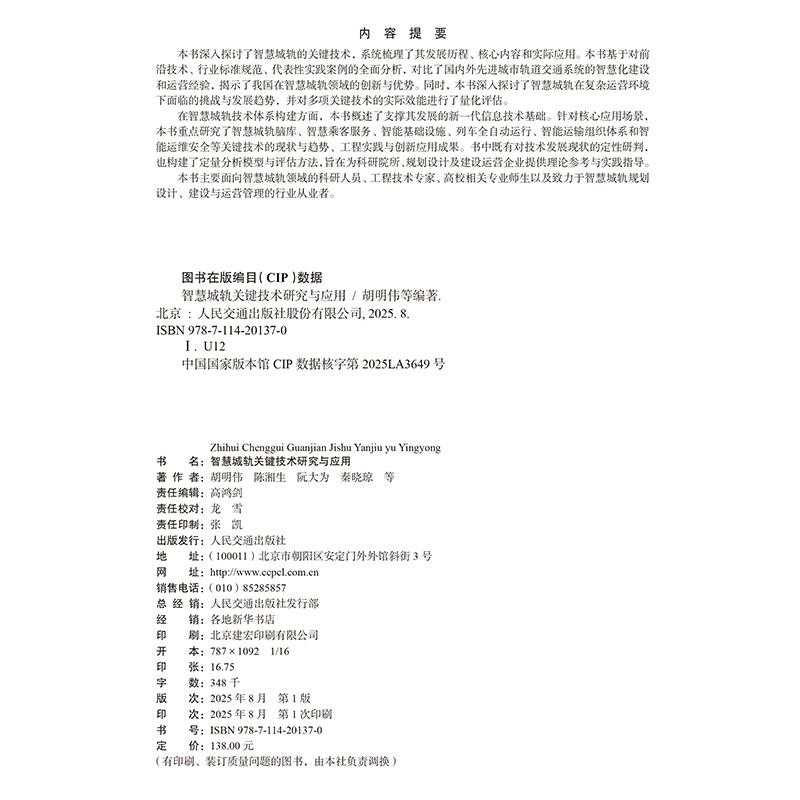 书名:智慧城轨关键技术研究与应用