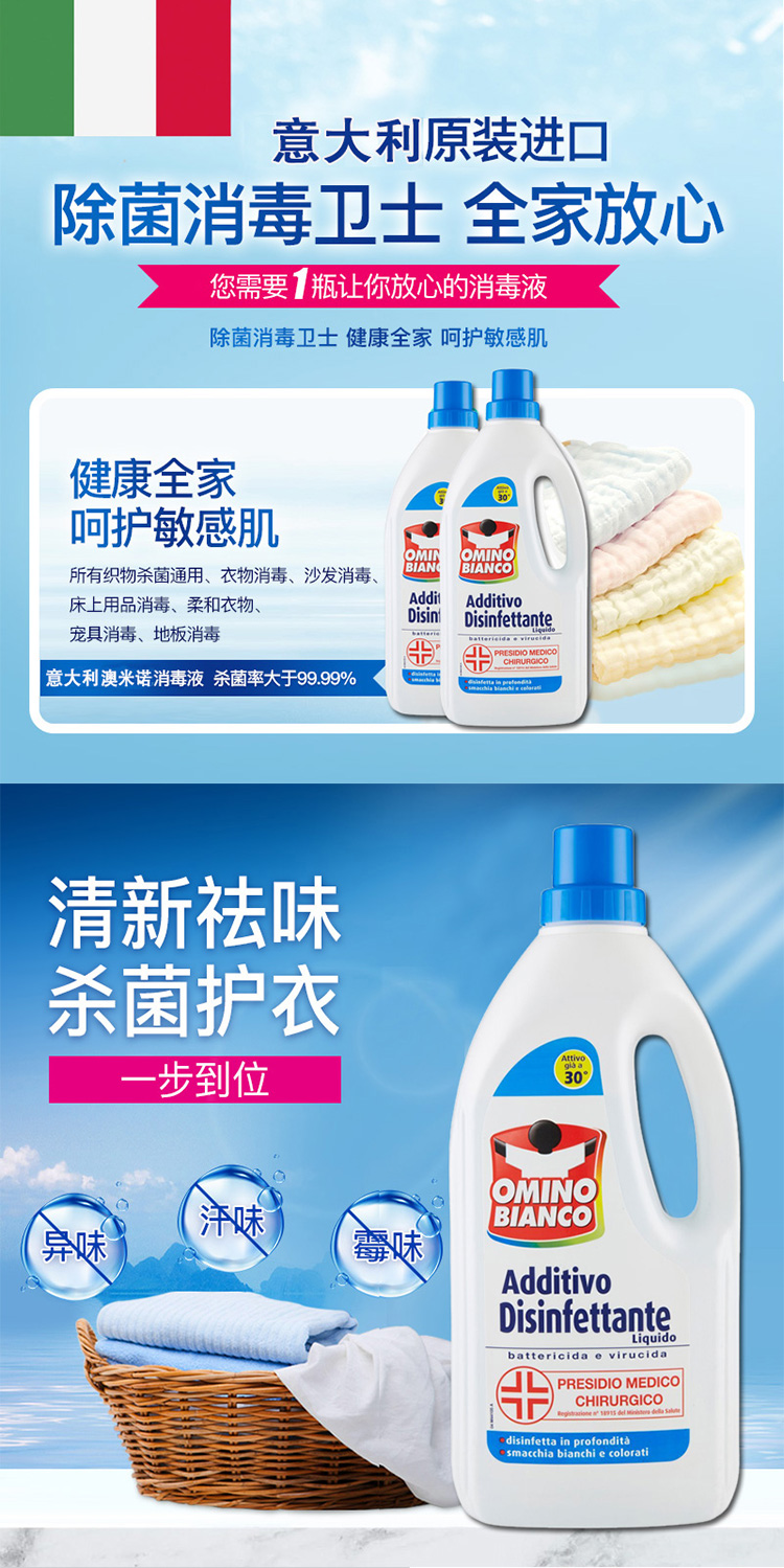 【中欧班列精选】ON 意大利 澳米诺OMINO家用消毒液杀菌婴儿衣物除菌洗衣消毒900ml
