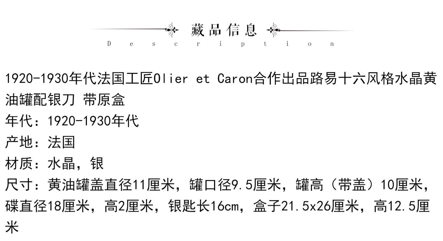 独角鹿西洋古董法国工匠Olier et Caron路易十六风水晶黄油罐银刀