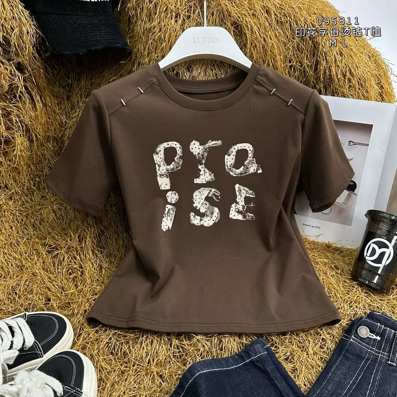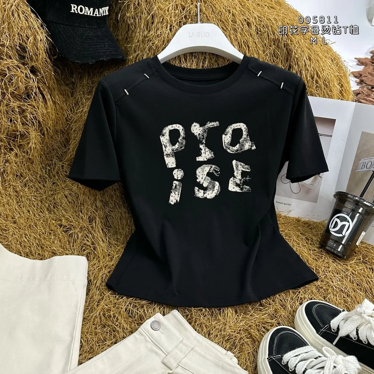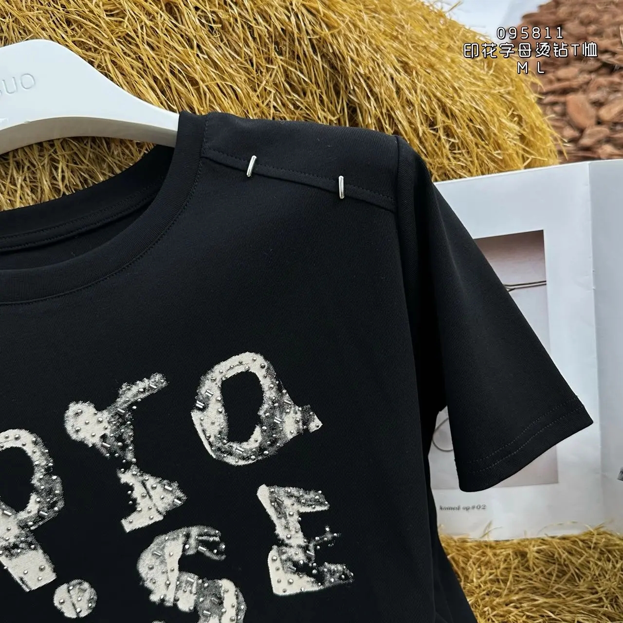 4BAR095811#印花字母烫钻T恤