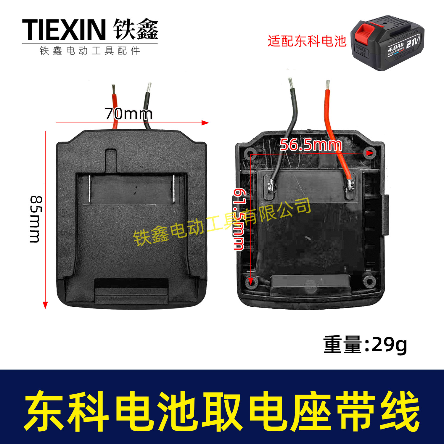 【货号07159】东科/科王/博诺电池取电器焊线东科款21V电池取电座电池放电座锂电池改装配件