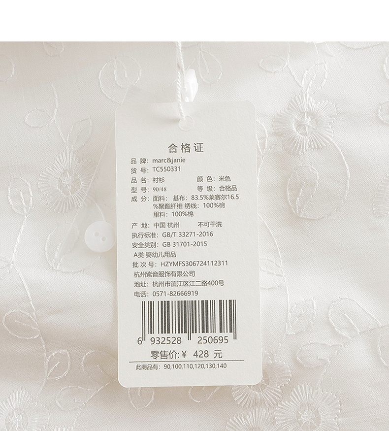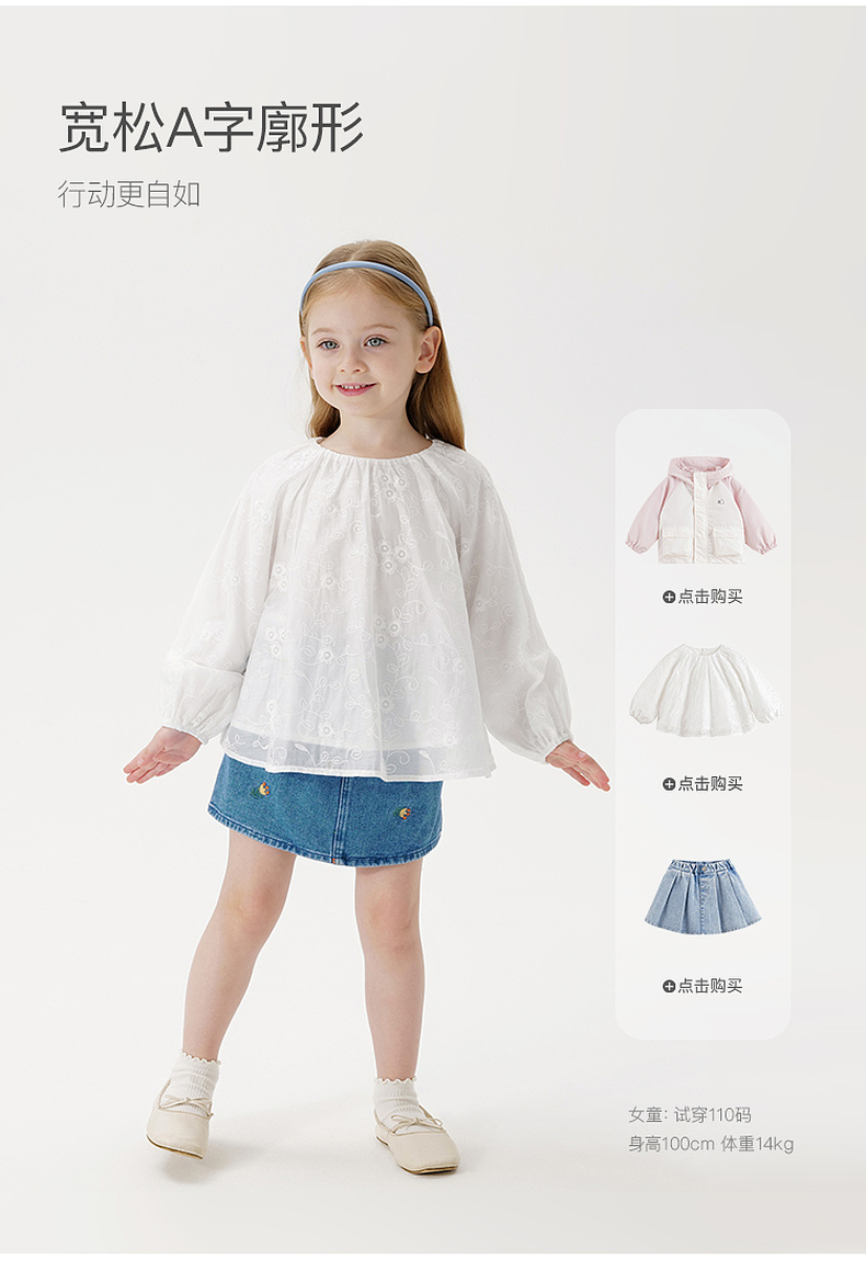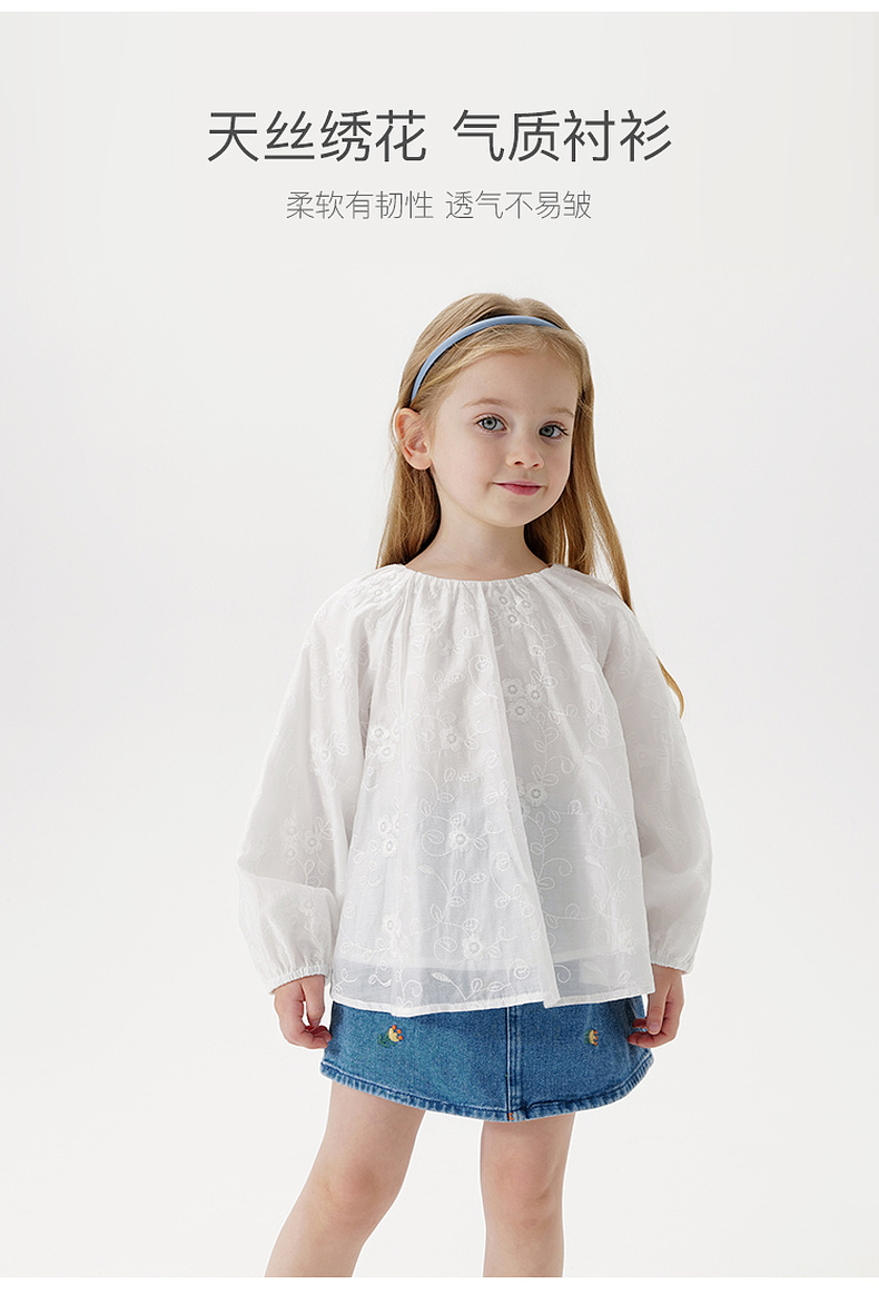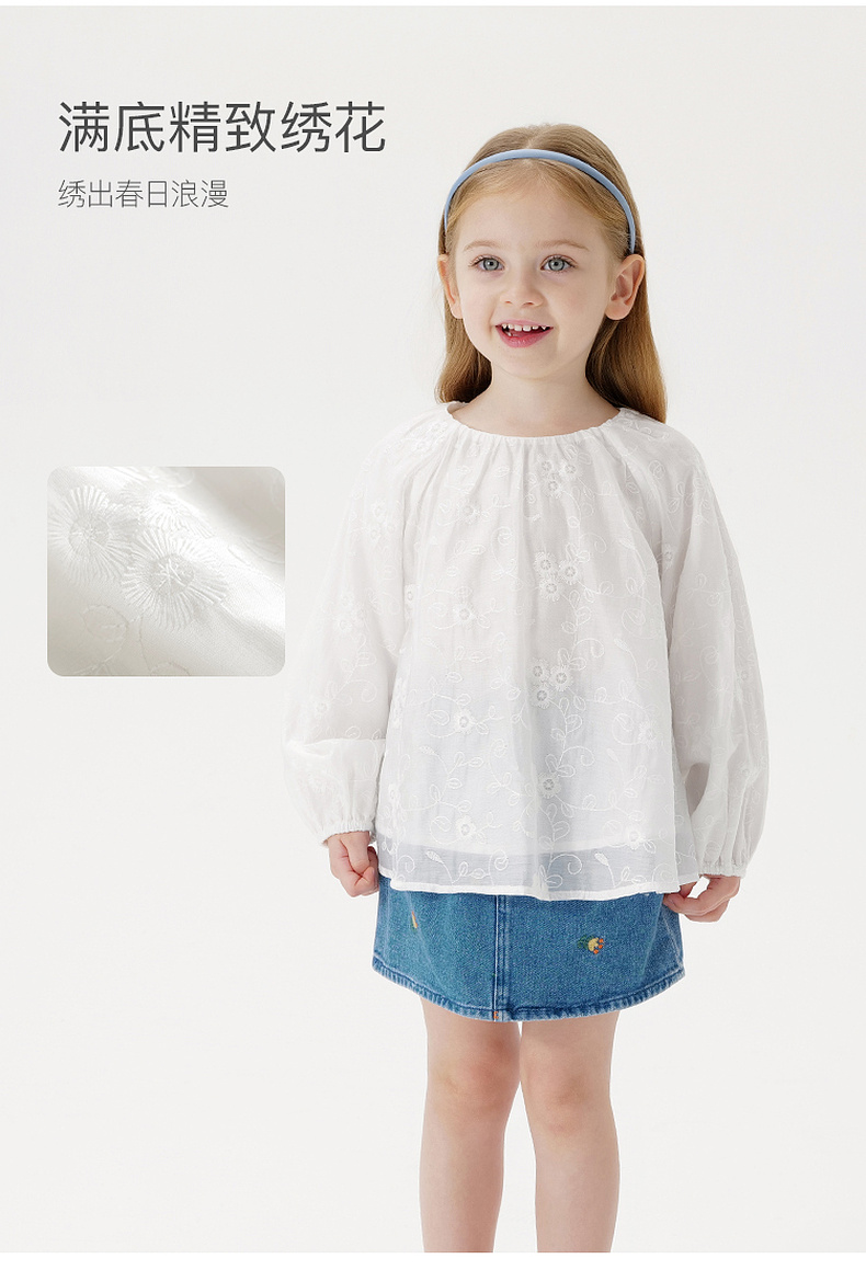 马克珍妮女童绣花泡泡袖衬衫 宝宝衬衣上衣2025年春装新款550331