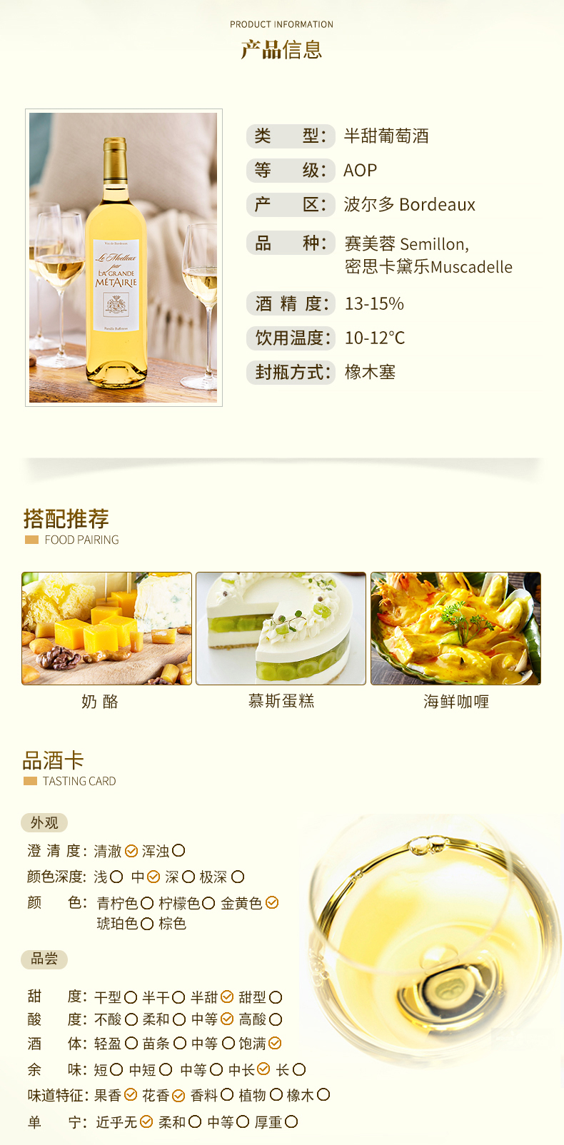 梅塔丽温情半甜白葡萄酒 Le Moelleux par La Grande Metairie 750ml