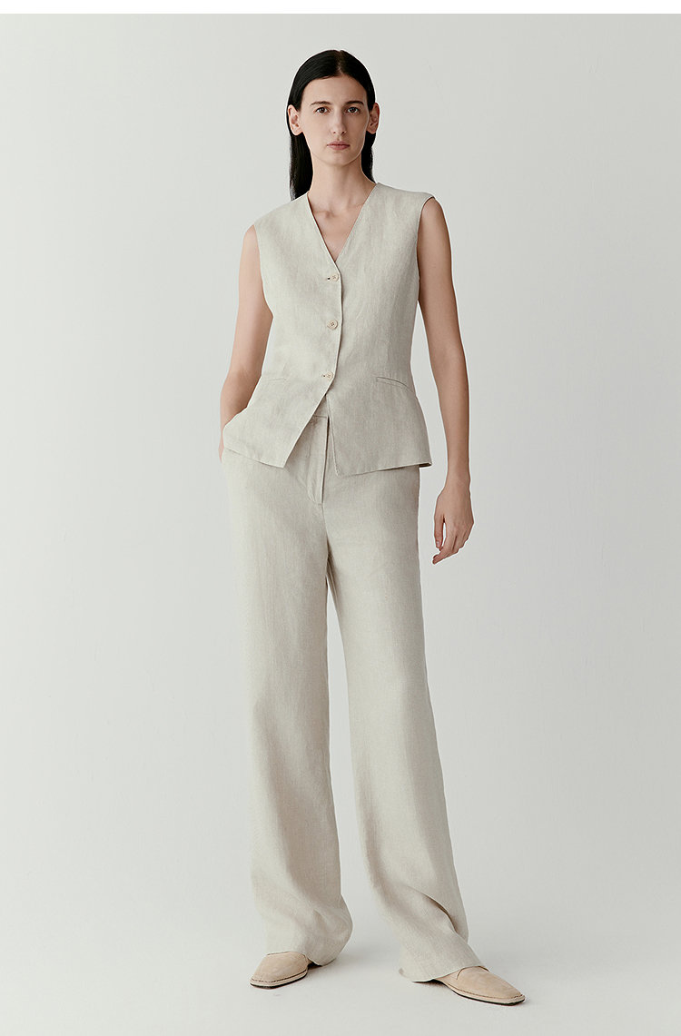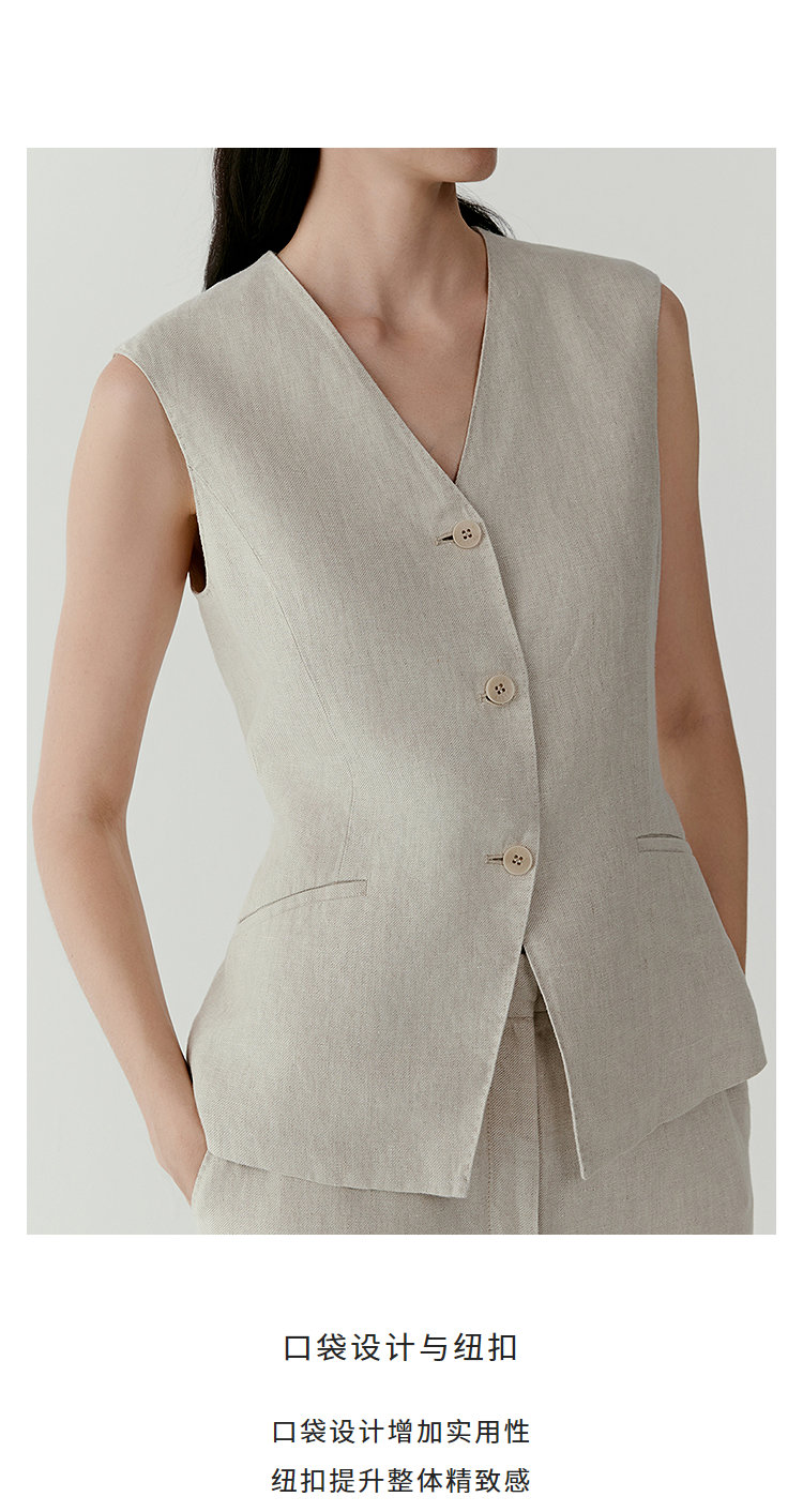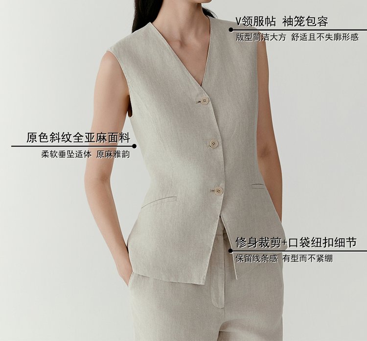斜纹亚麻马甲采用比利时进口%亚麻面料