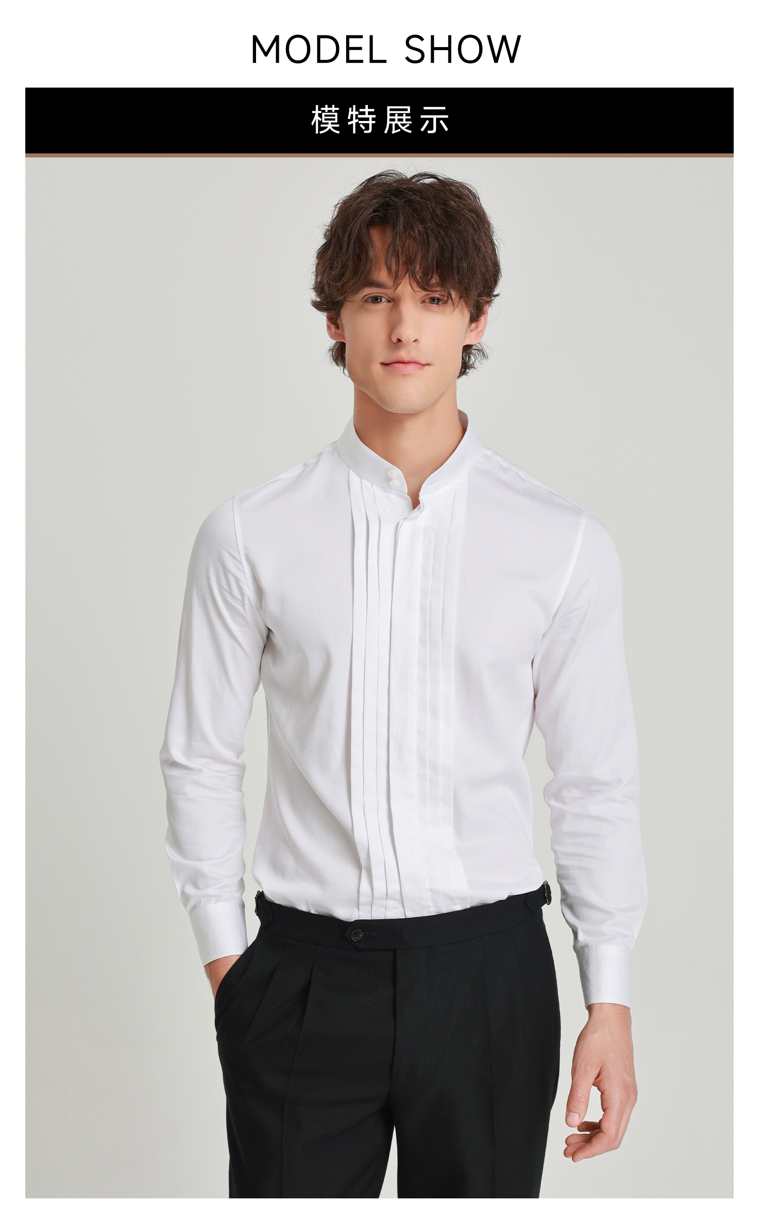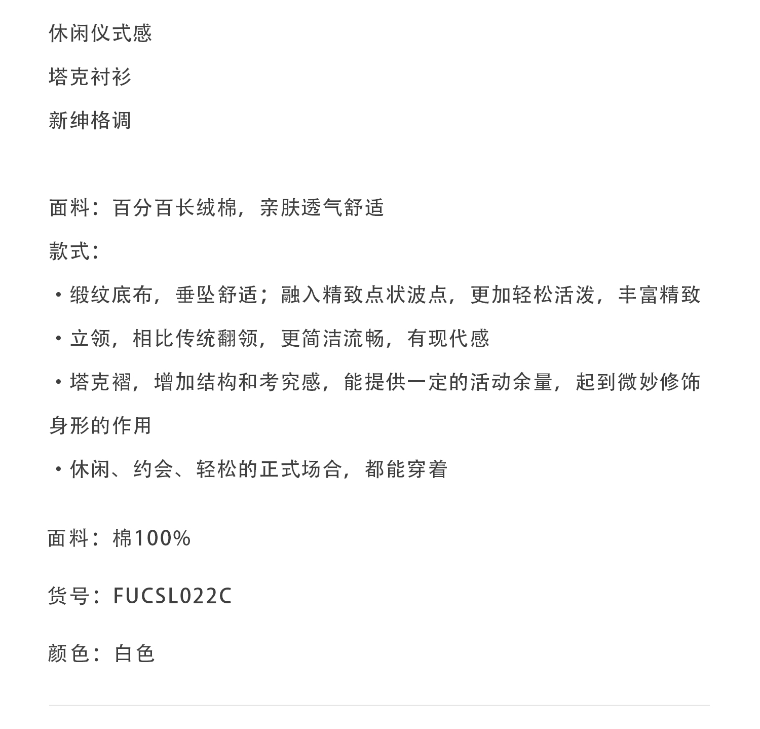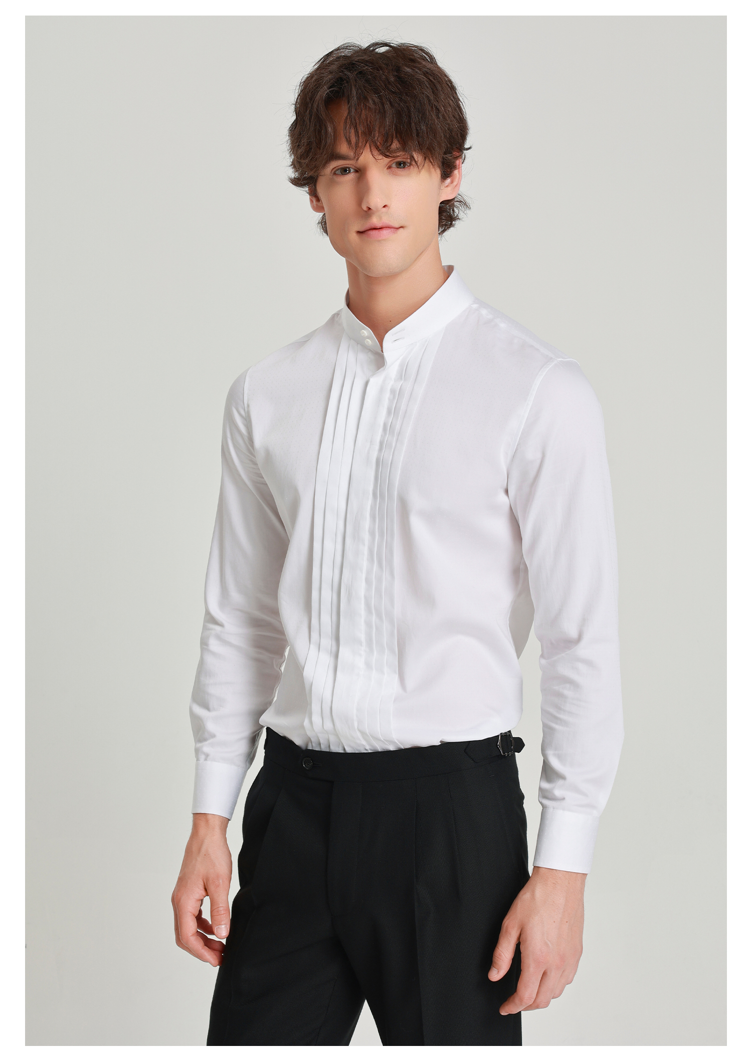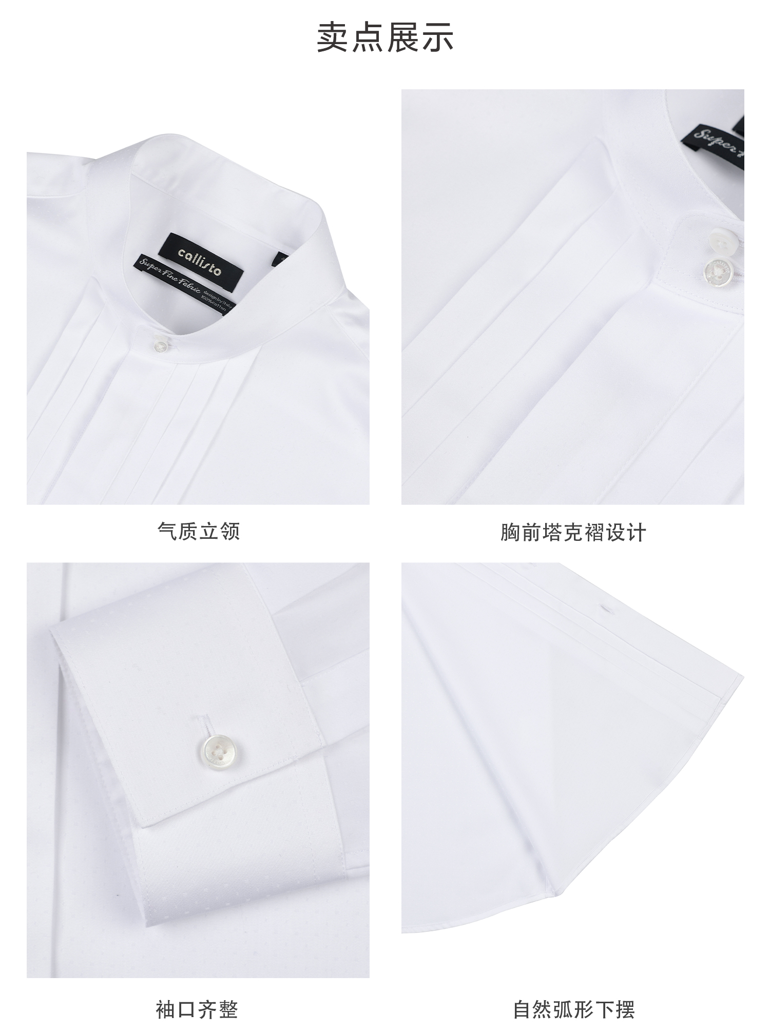callisto白色新绅格调塔克衬衫
