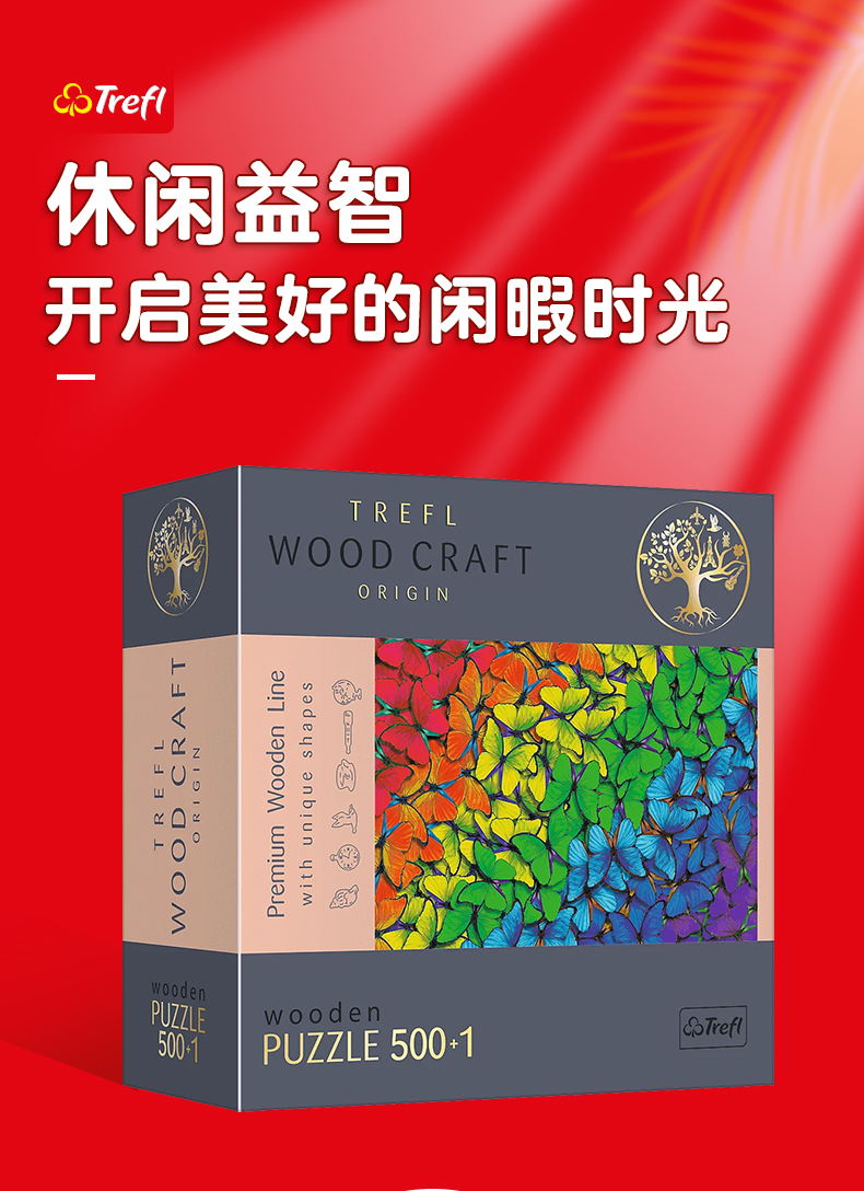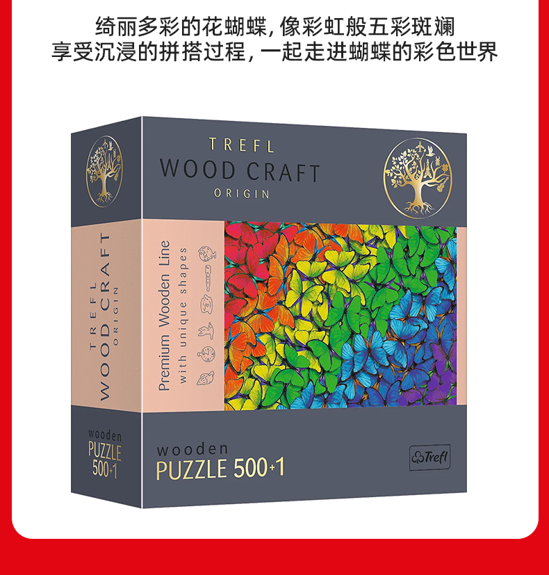 TREFL 平面木制拼图500+1片彩虹蝴蝶TREC20159
