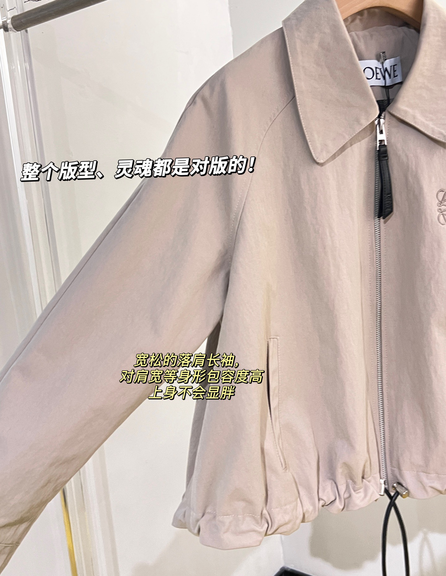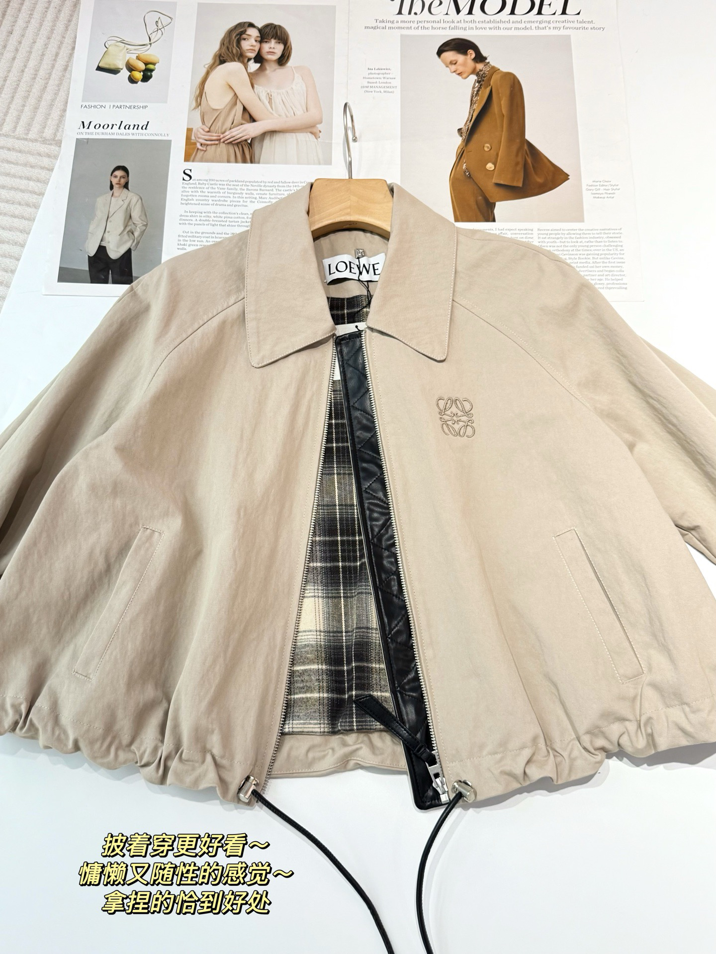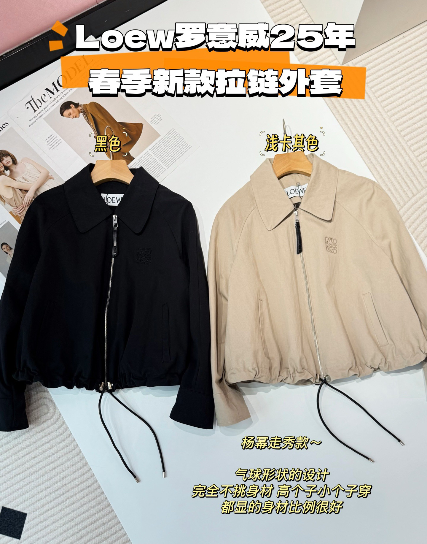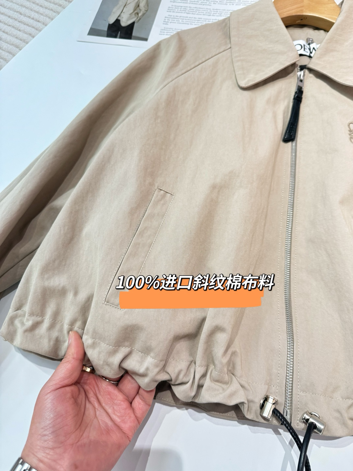 🔺老罗家25春季新款Loewe女士短款拉链抽绳夹克【杨幂时装周同款】某宝代购在售价31399软妹币,爆火全网,代购一件难求,巴恩风今年流行趋势,这款外套非常简约大气!浅卡其色和黑色两种颜色随心选,都非常百搭耐看!