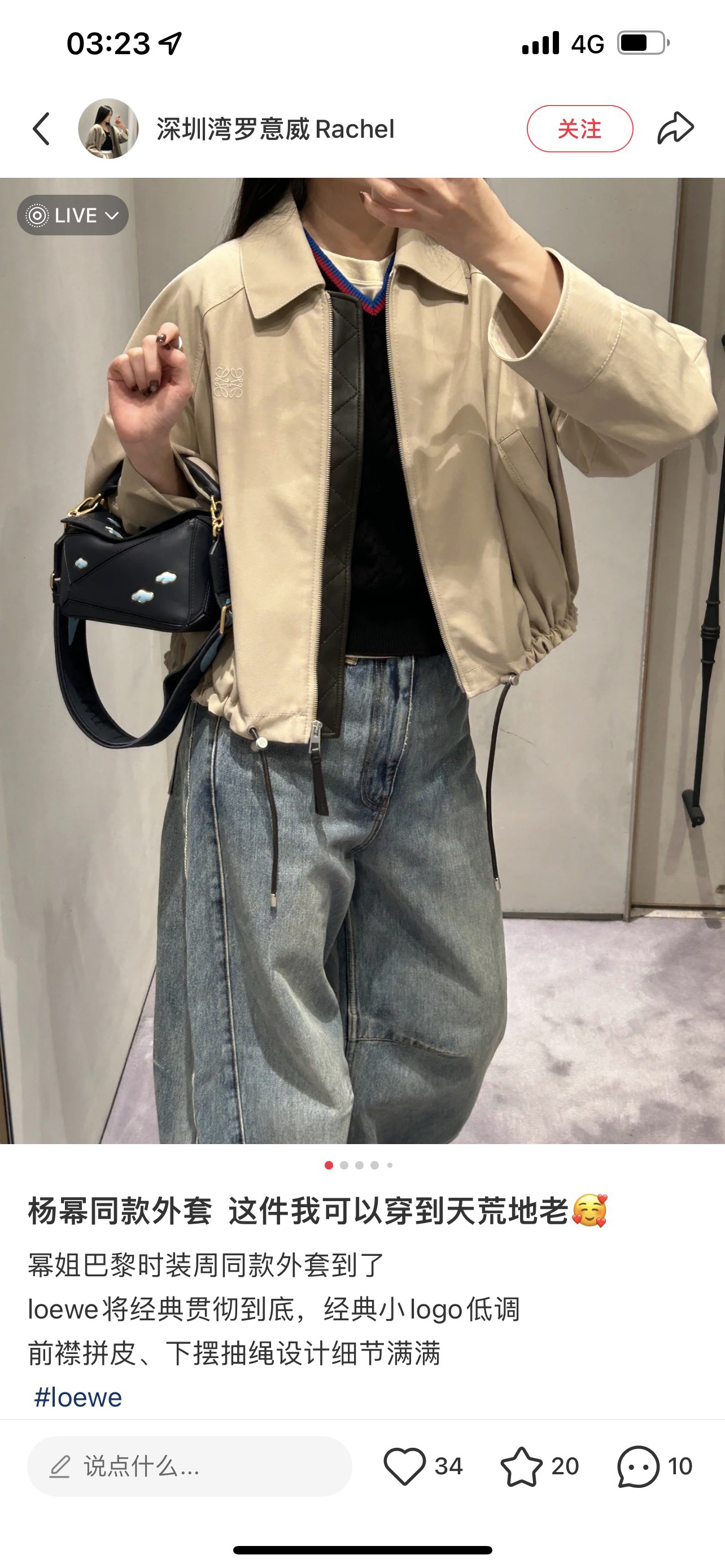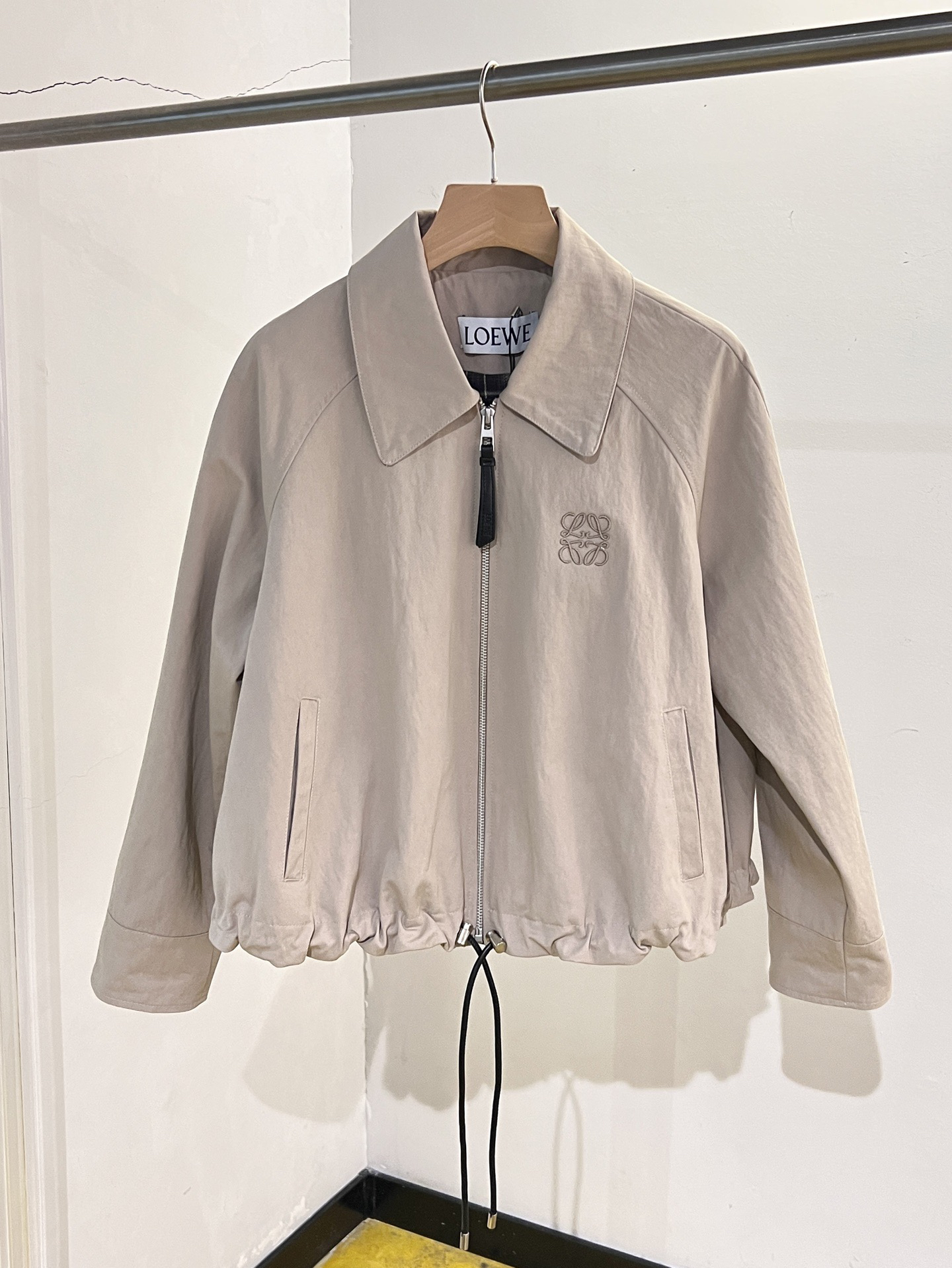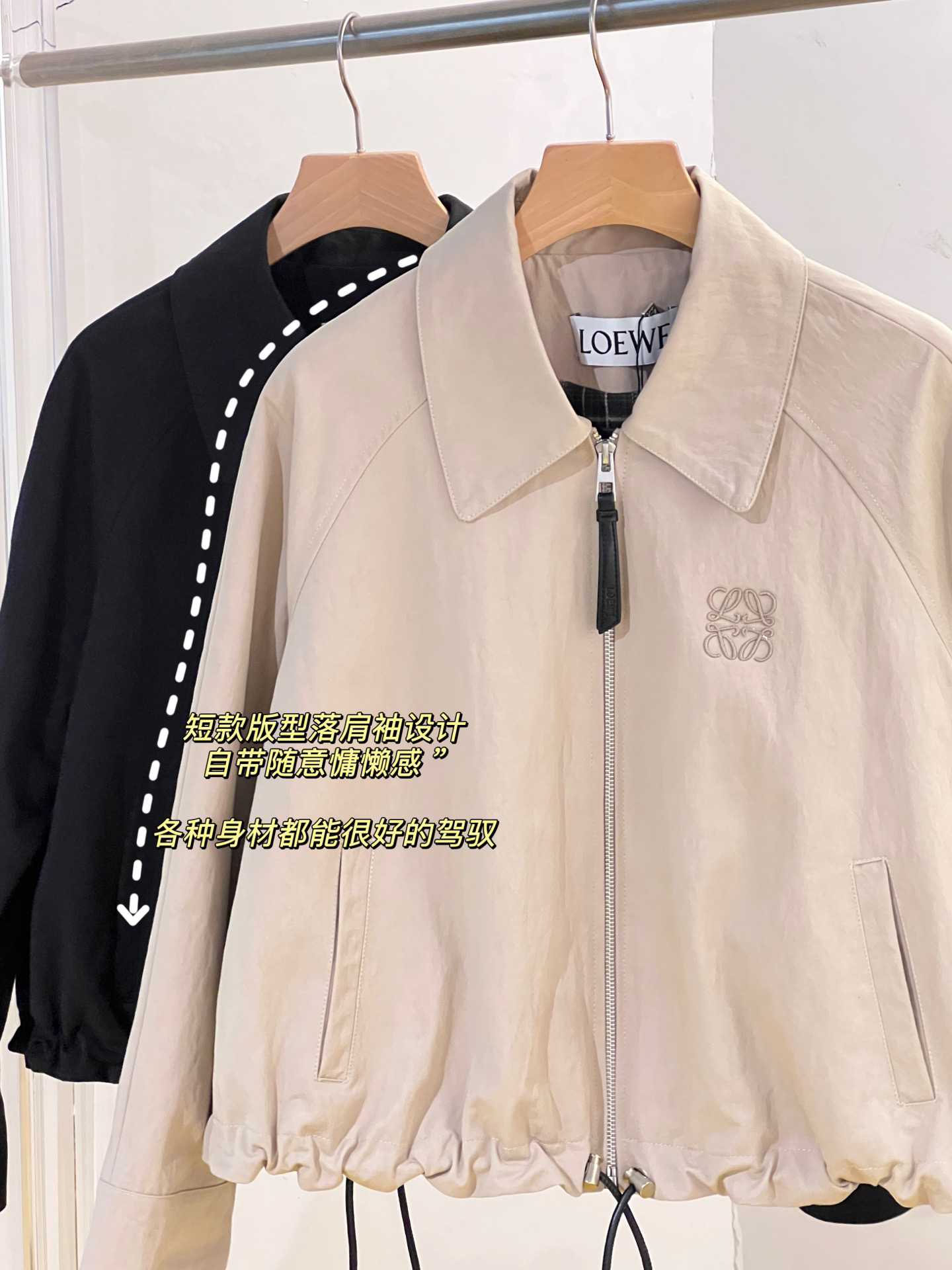 🔺老罗家25春季新款Loewe女士短款拉链抽绳夹克【杨幂时装周同款】某宝代购在售价31399软妹币,爆火全网,代购一件难求,巴恩风今年流行趋势,这款外套非常简约大气!浅卡其色和黑色两种颜色随心选,都非常百搭耐看!