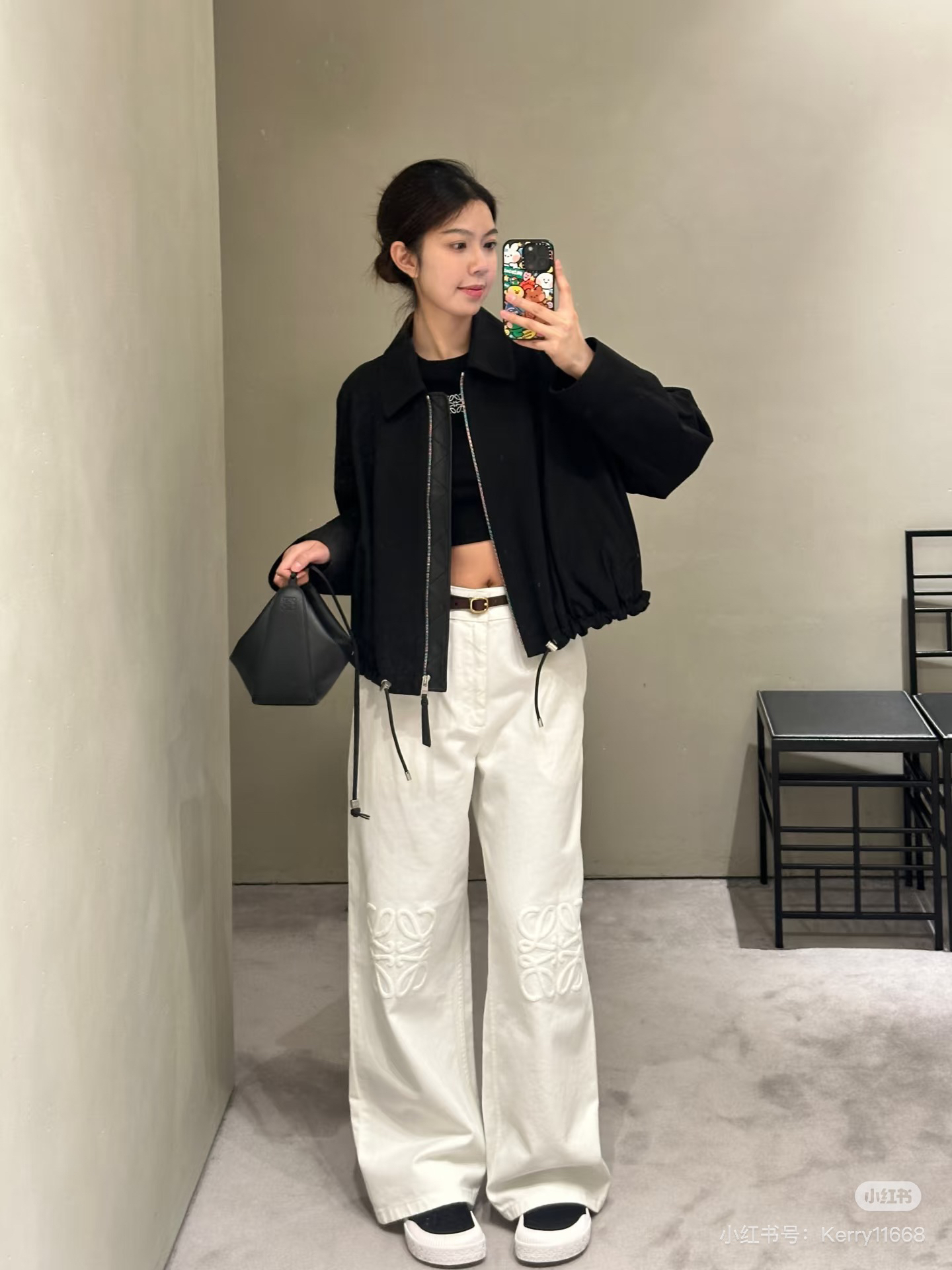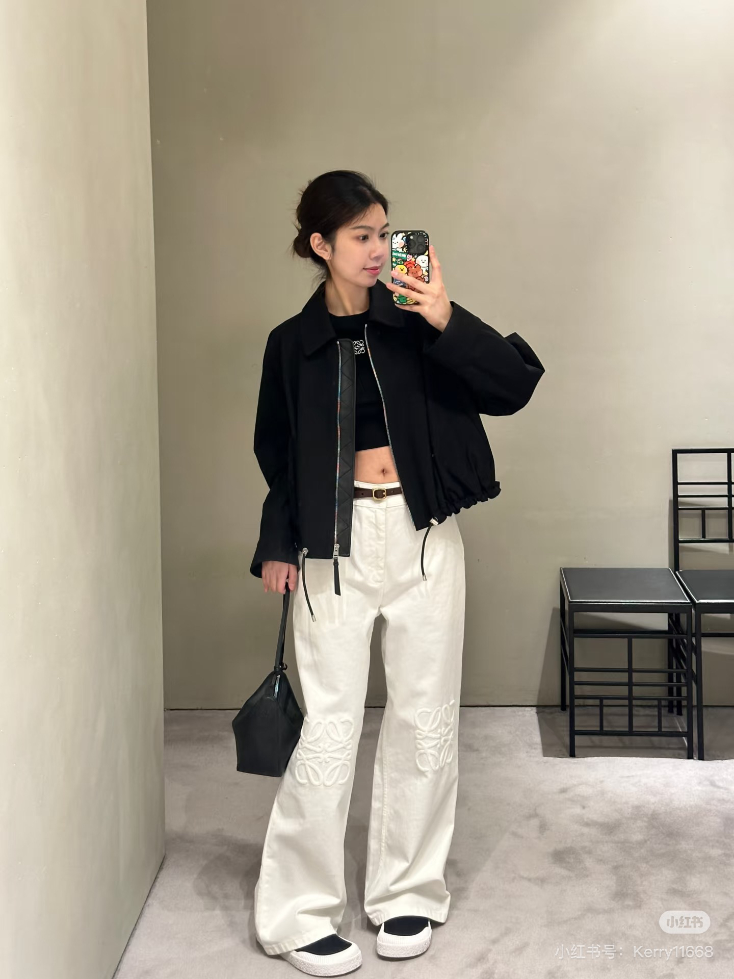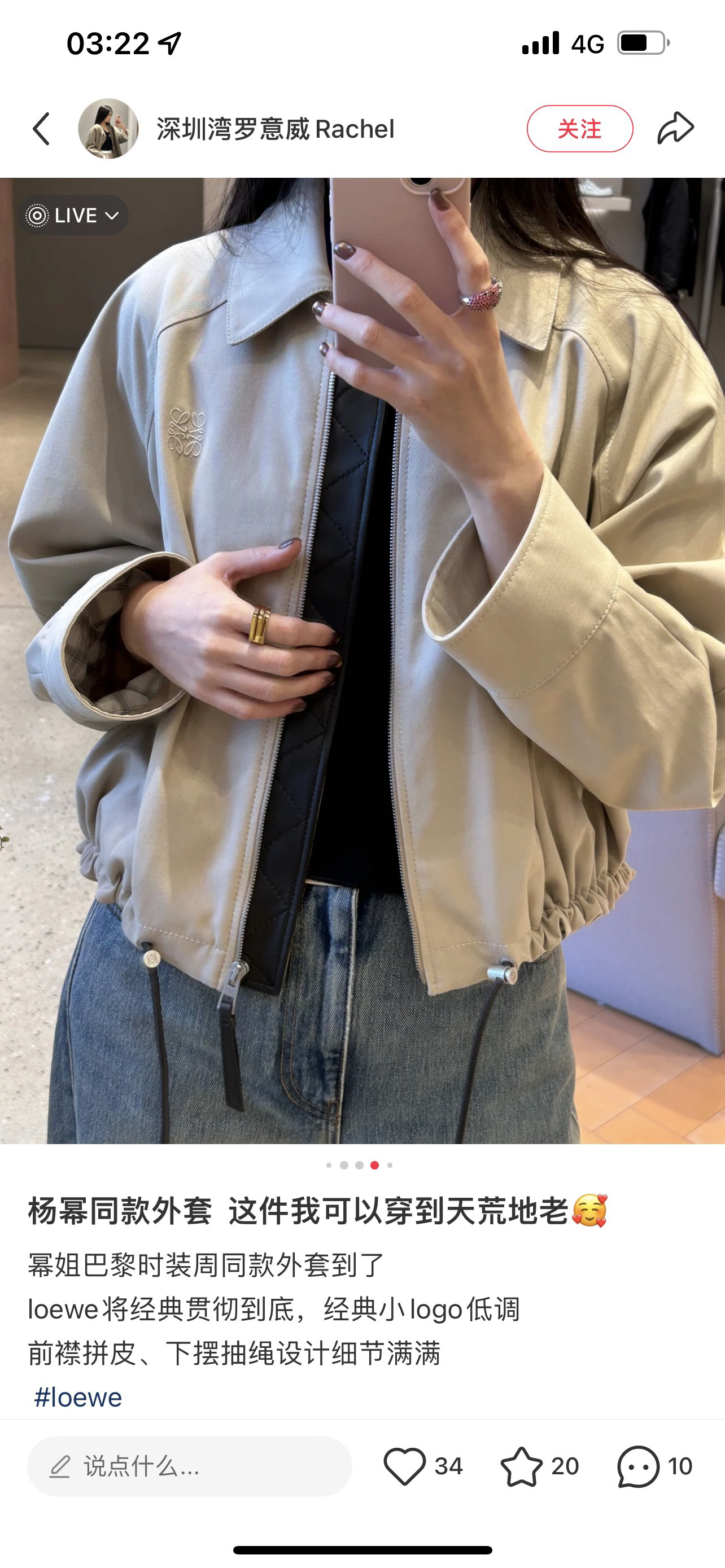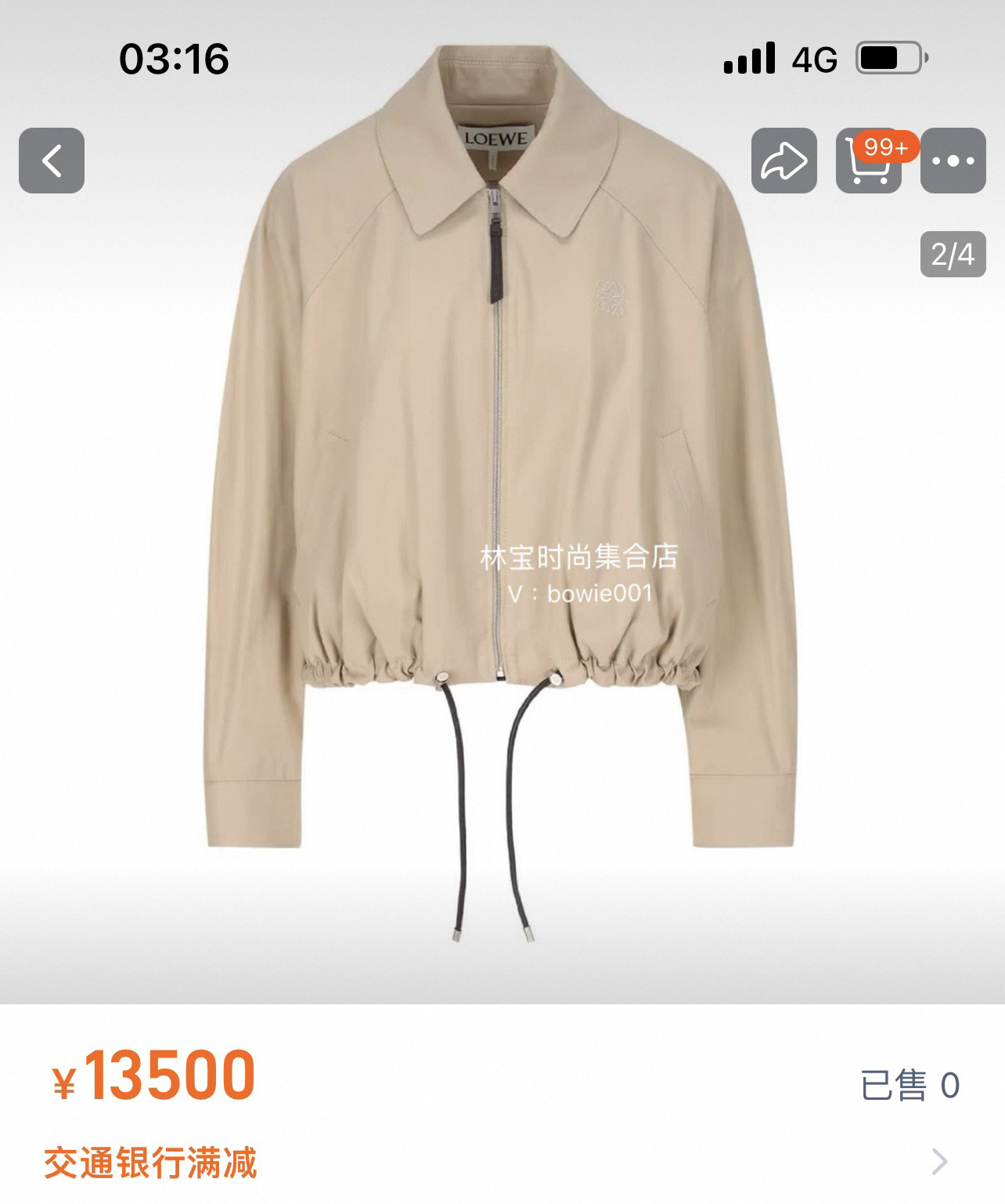 🔺老罗家25春季新款Loewe女士短款拉链抽绳夹克【杨幂时装周同款】某宝代购在售价31399软妹币,爆火全网,代购一件难求,巴恩风今年流行趋势,这款外套非常简约大气!浅卡其色和黑色两种颜色随心选,都非常百搭耐看!