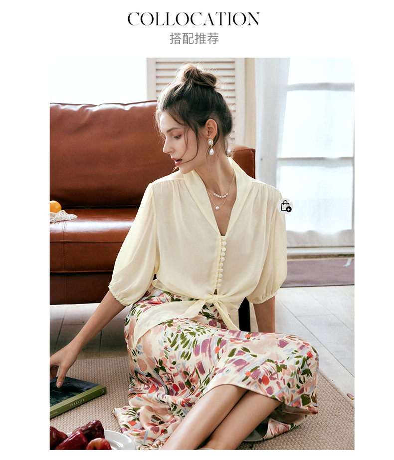 OLrain欧芮儿V领短袖刺绣图案POLO衫女夏季2025新款气质上衣
