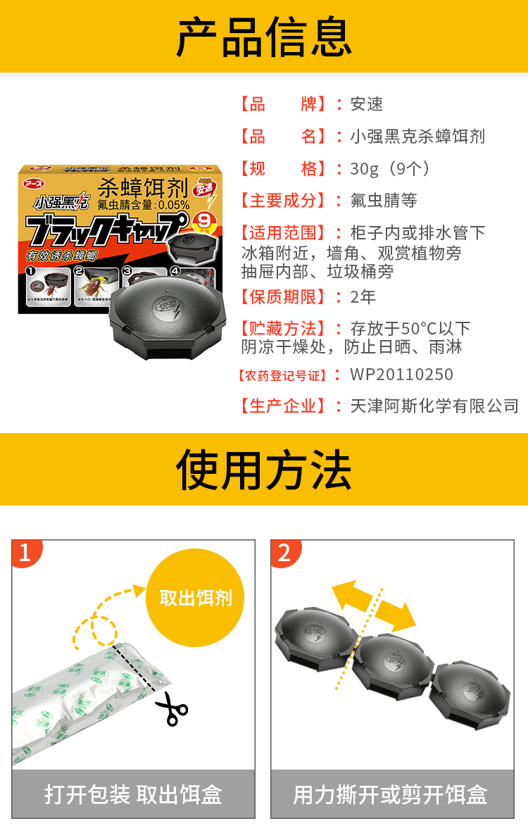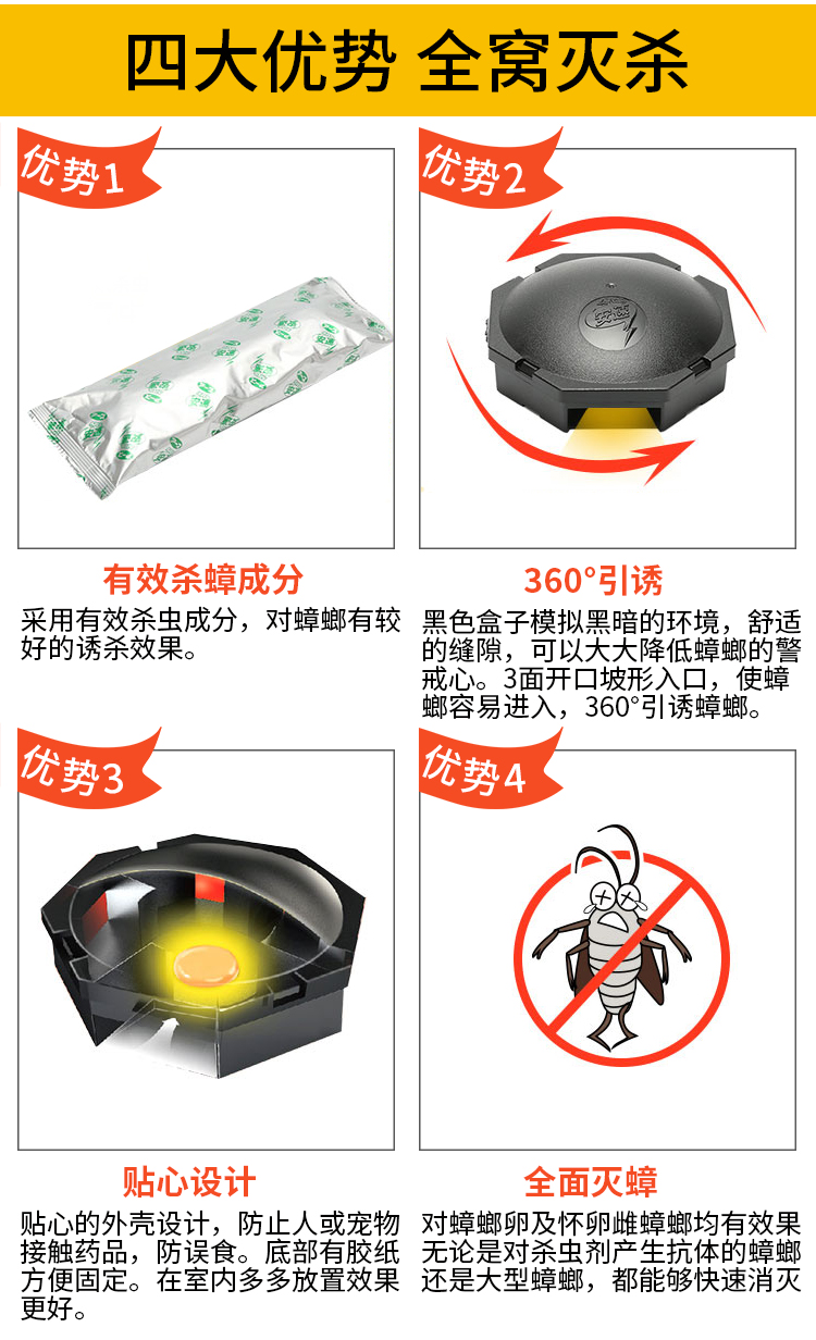 ARS安速 蟑螂药杀蟑螂饵剂 小黑帽小强黑克灭蟑杀小强蟑螂屋除蟑螂器蟑螂克星杀蟑螂诱捕器9枚装