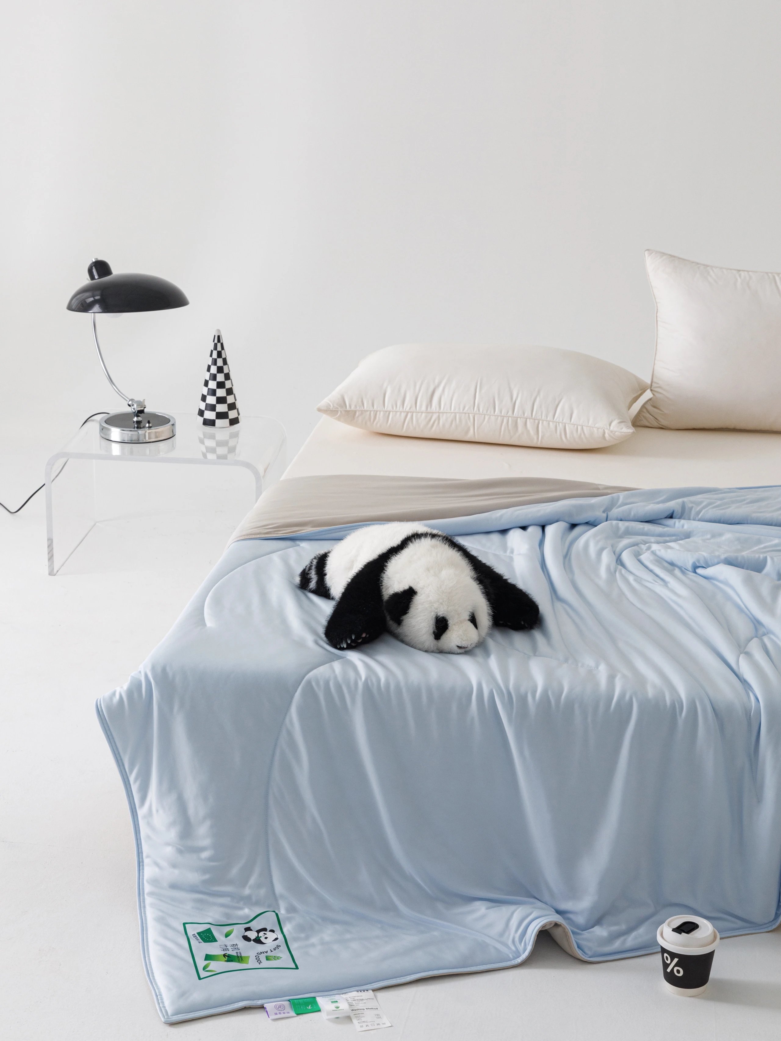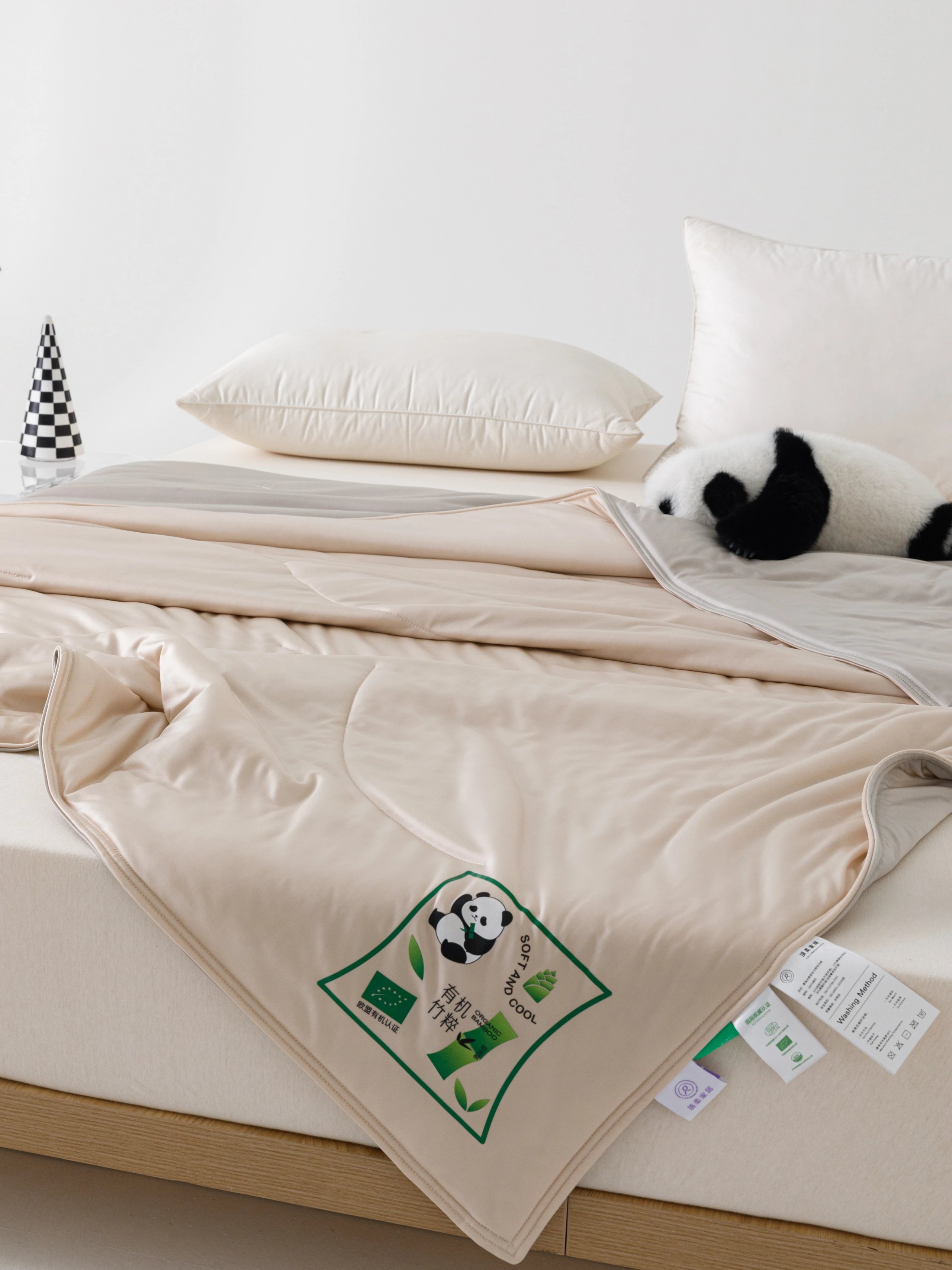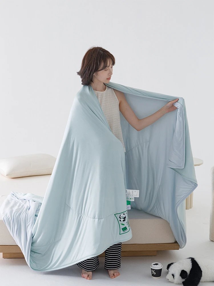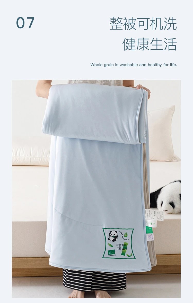 竹浆纤维不仅自带天然凉感,还具备强大的抗菌性能。夏日人体容易出汗,细菌滋生快,而竹浆纤维能有效抑制细菌繁衍,为你打造一个健康的睡眠环境。同时,它出色的吸湿性可以迅速吸收并传导汗液,让你整晚干爽舒适。 桑蚕丝的加入,赋予了夏被无与伦比的柔软触感。盖在身上,轻柔丝滑,如同被轻柔的羽毛拂过,每一次翻身都顺滑无比,极大提升了睡眠的舒适度。而且,桑蚕丝独特的光泽感也为被子增添了一份奢华气质。