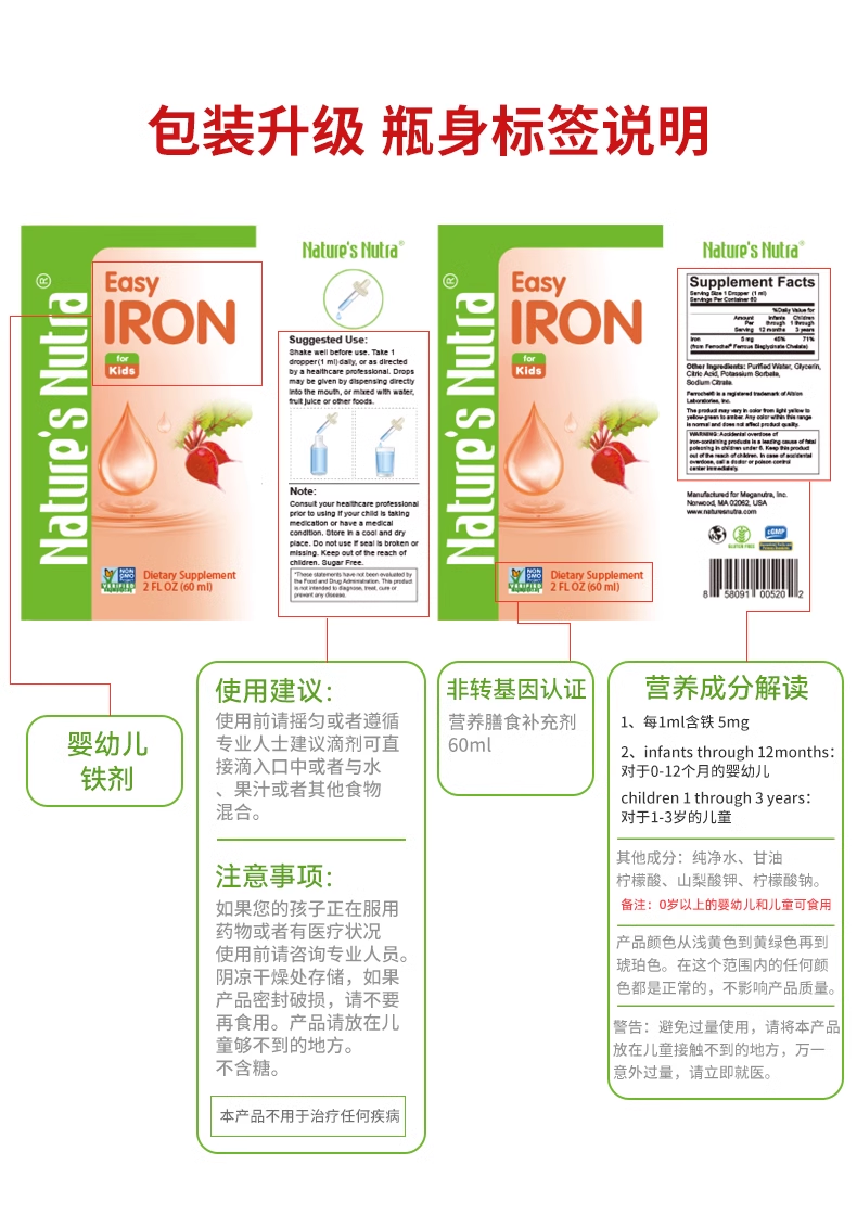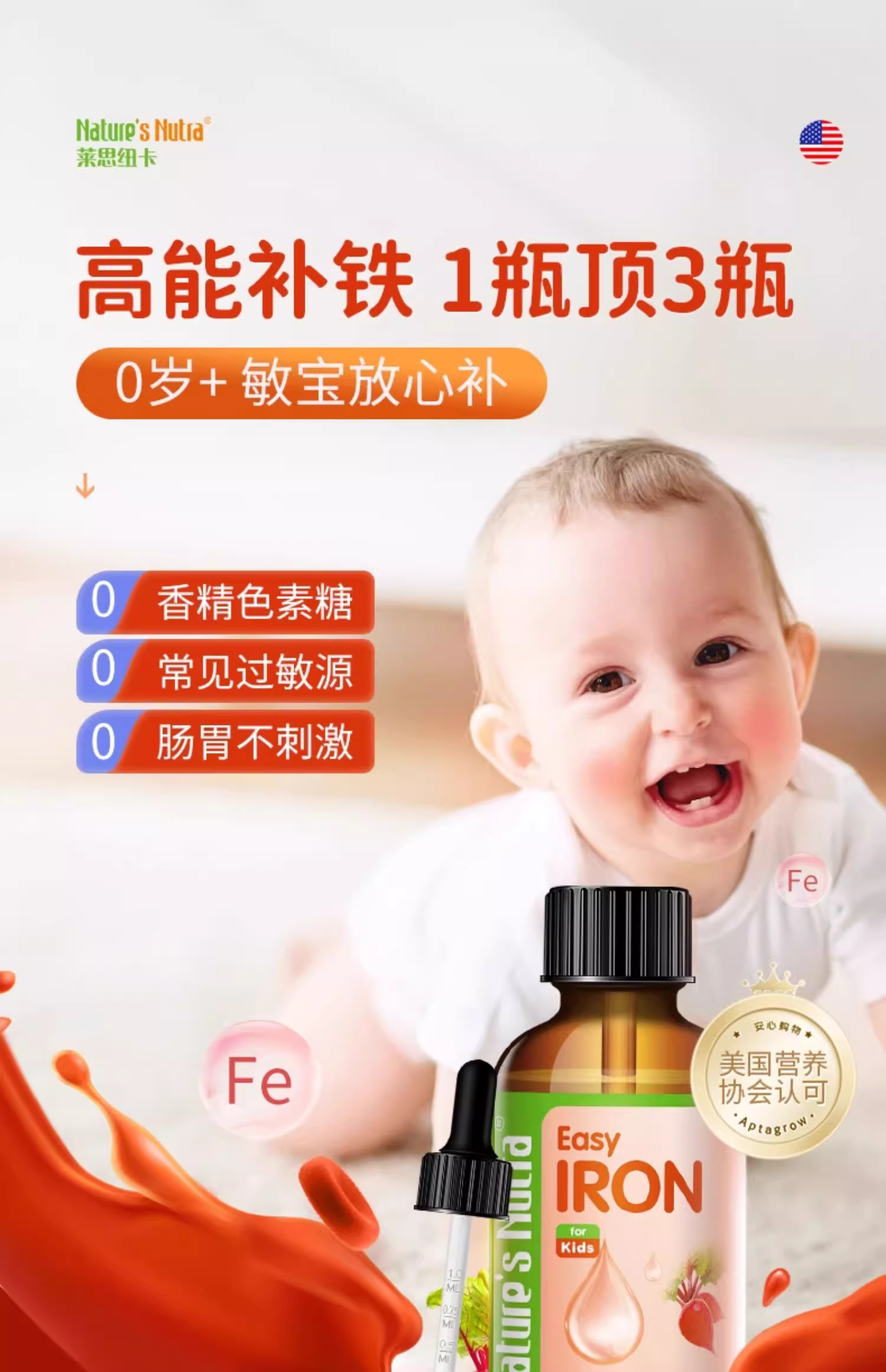 【保税仓发货 包邮包税 新生儿可用】莱思纽卡婴幼儿补铁滴剂新生婴儿童宝宝铁剂