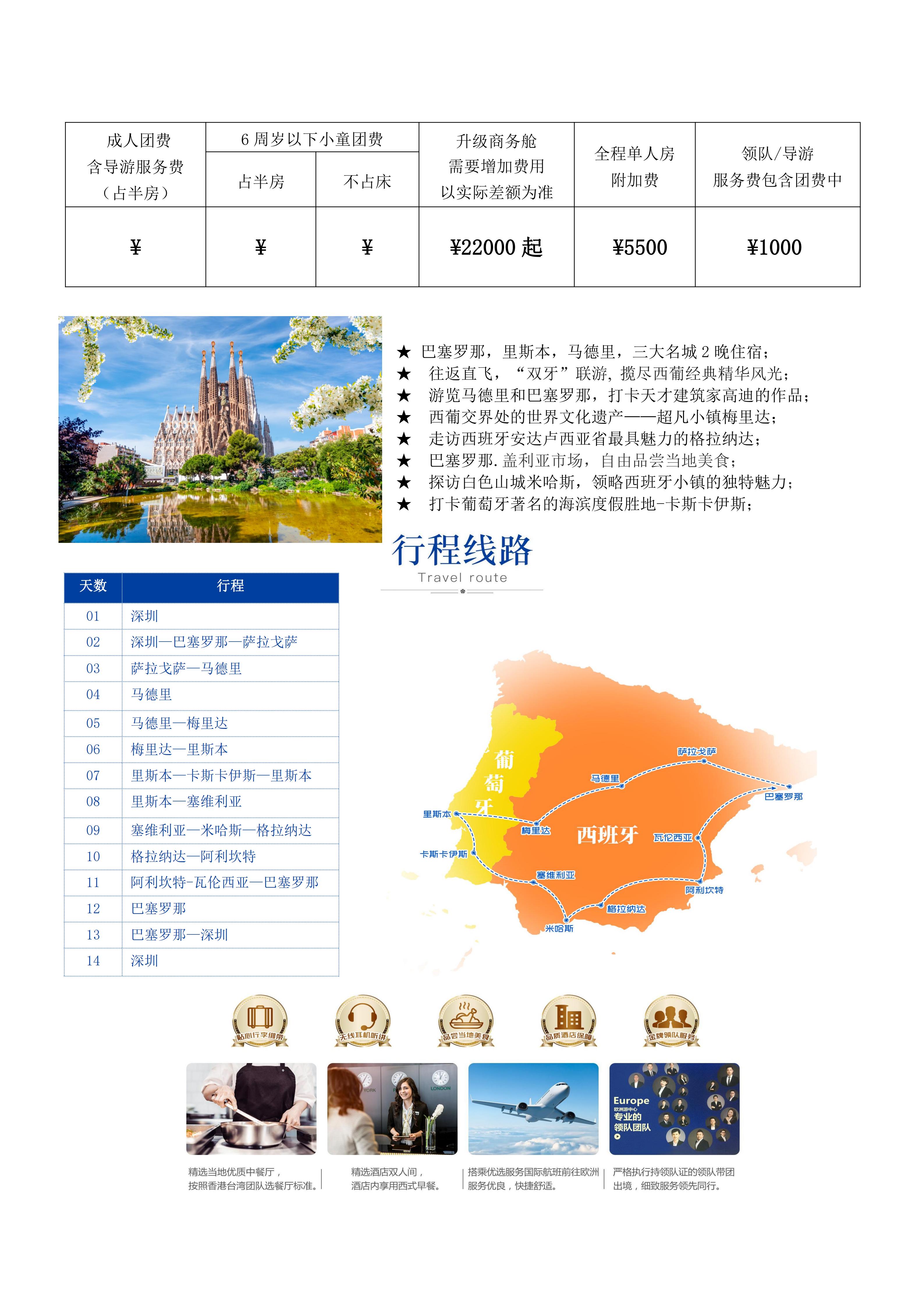 【春节】<南欧·西班牙+葡萄牙超值经典14天(深圳直飞往返)>巴塞罗那、里斯本、马德里、超凡小镇梅里达、格拉纳达、白色山城米哈斯、海滨度假胜地-卡斯卡伊斯