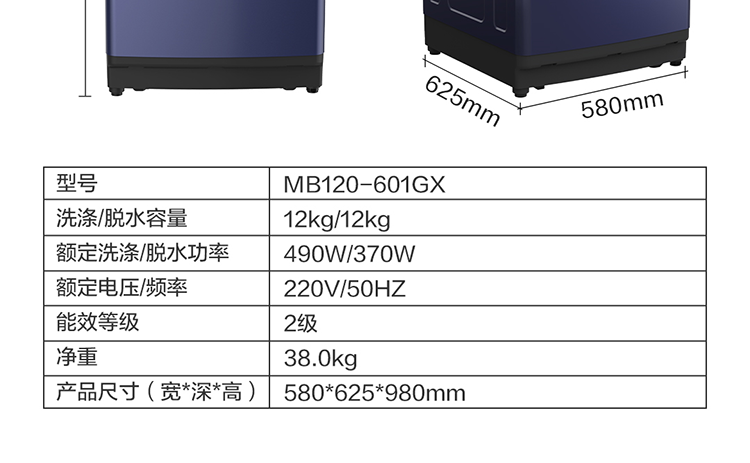 美菱 MB120-601GX 12公斤全自动波轮洗衣机 自清洁 一键智洗 一键脱水MB120-601GX(线下同款)
