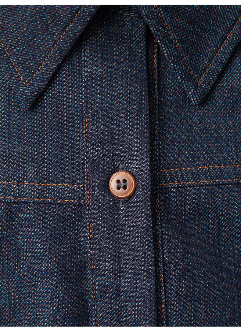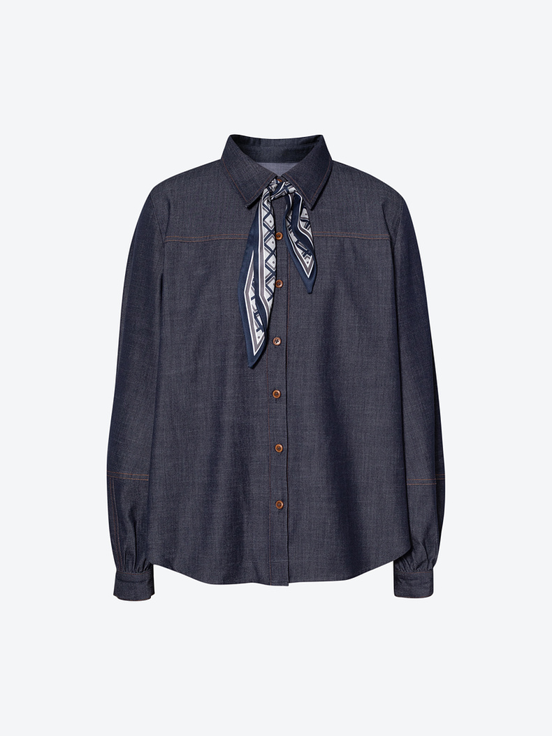 【商场同款】诗凡黎藏青翻领牛仔衬衫2025春新款衬衣女3G2120981