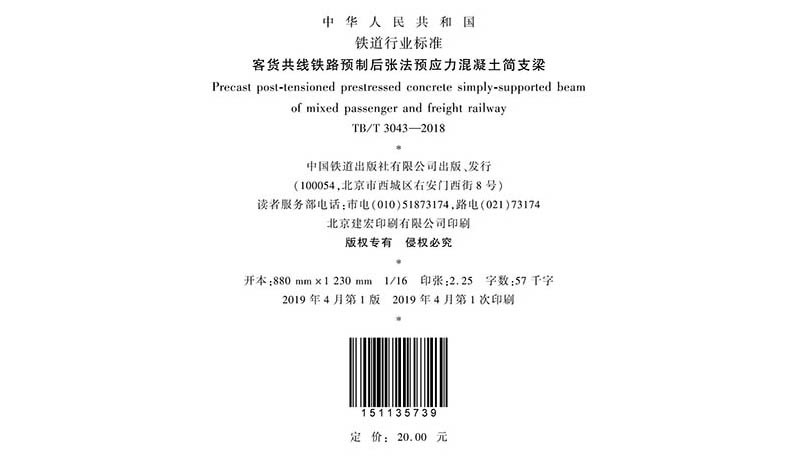 15113.5739客货共线铁路预制后张法预应力混凝土简支梁 TB/T 3043-2018