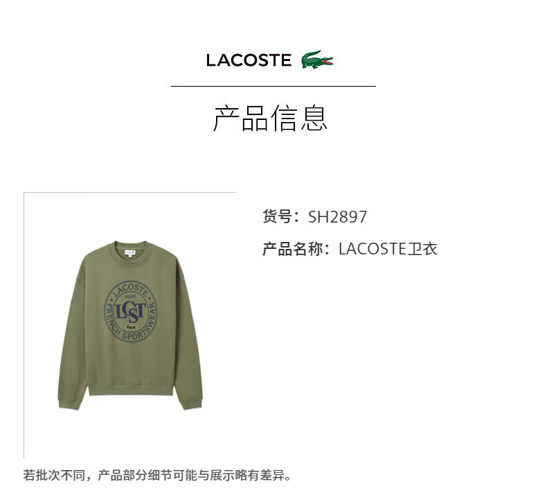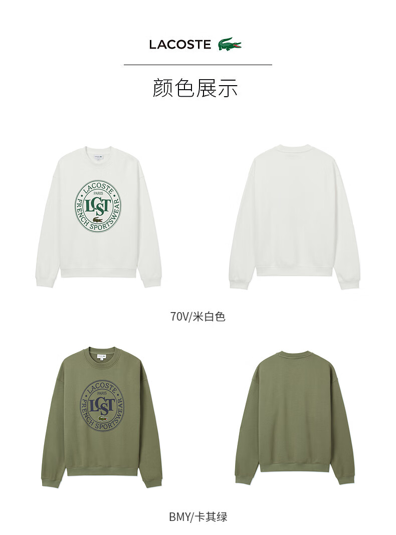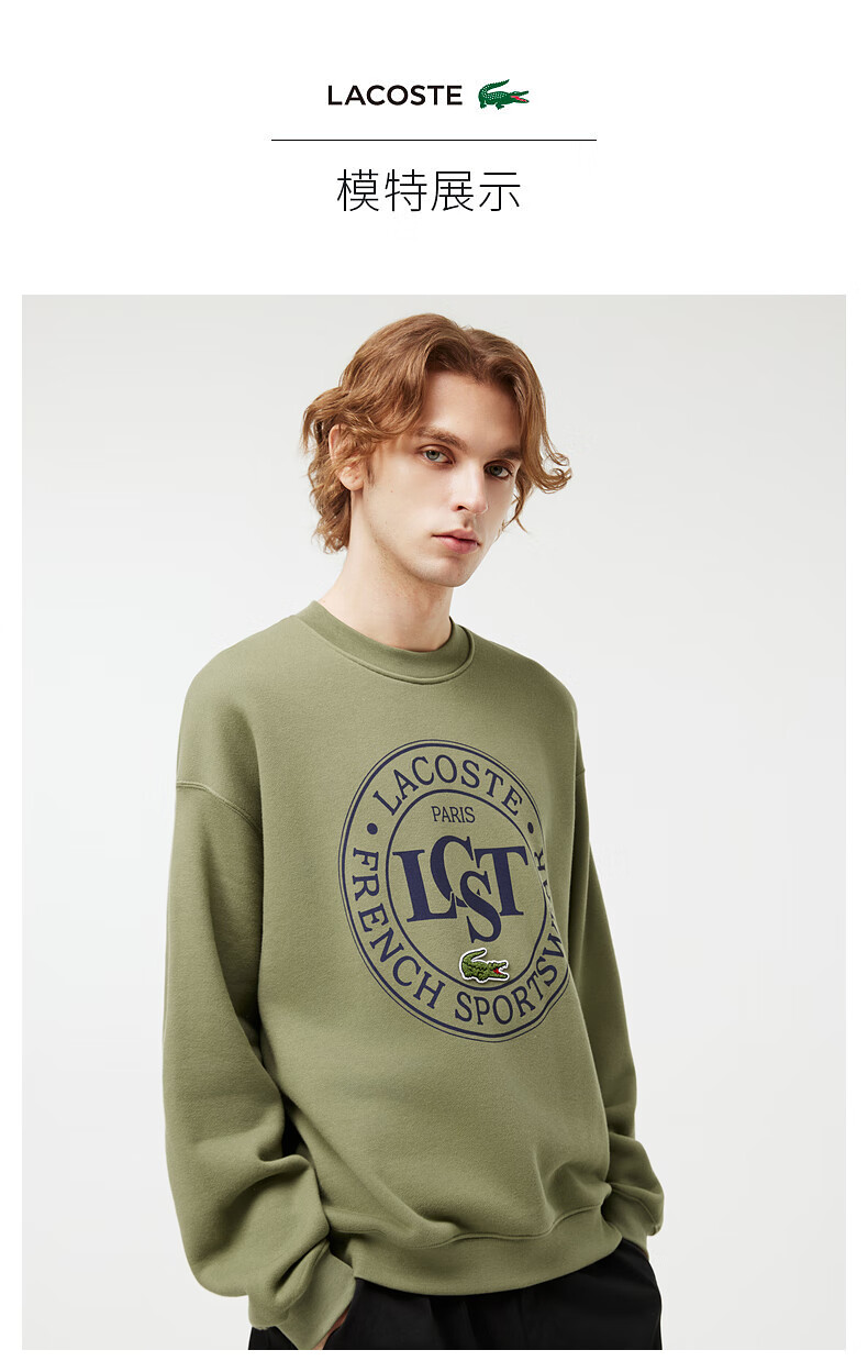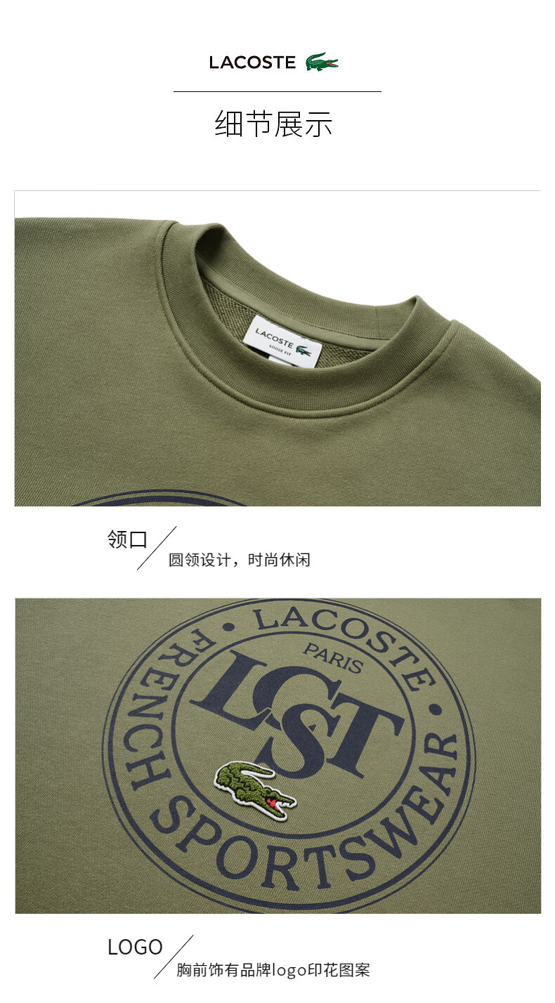 Lacoste法国鳄鱼男装新款时尚宽松纯棉套头圆领长袖卫衣SH2897-10
