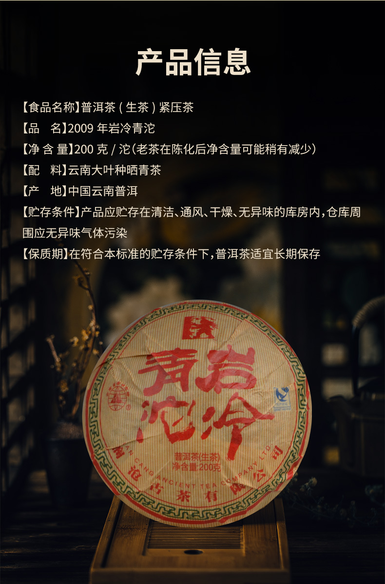 澜沧古茶2009年岩冷青沱普洱茶生茶200g