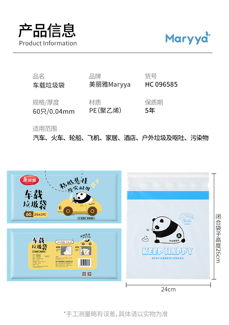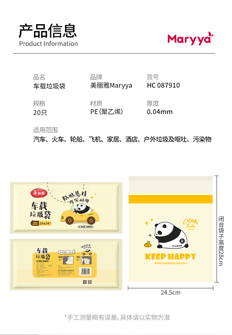【美丽雅垃圾袋】车载垃圾袋加厚学生课桌面粘贴式汽车内车用清洁袋26*24CM