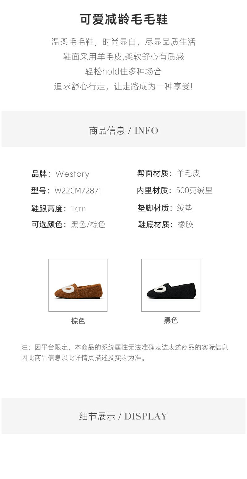 westory绒里平底毛毛鞋鞋22 秋冬新款外穿一脚蹬通勤百搭女72871