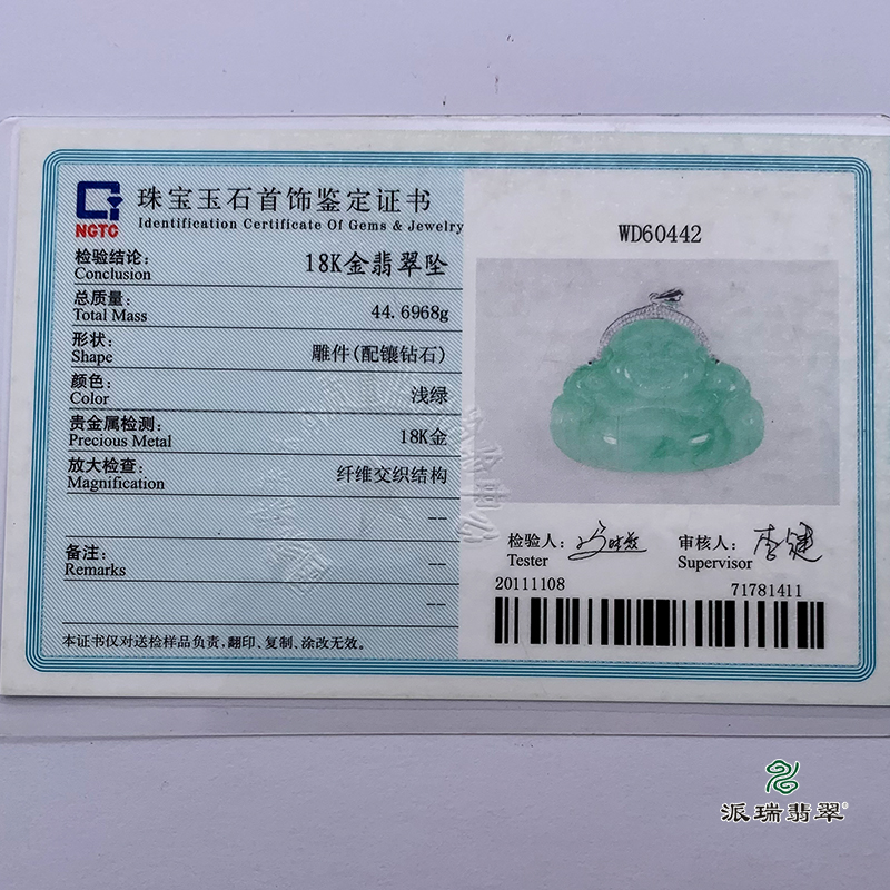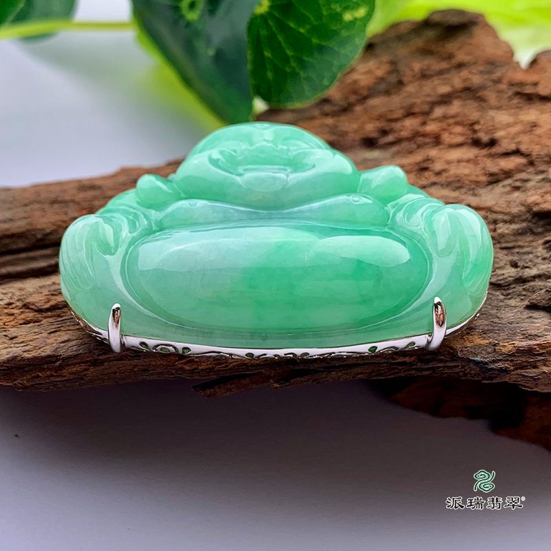 派瑞翡翠 18k金翡翠佛 糯种 绿色