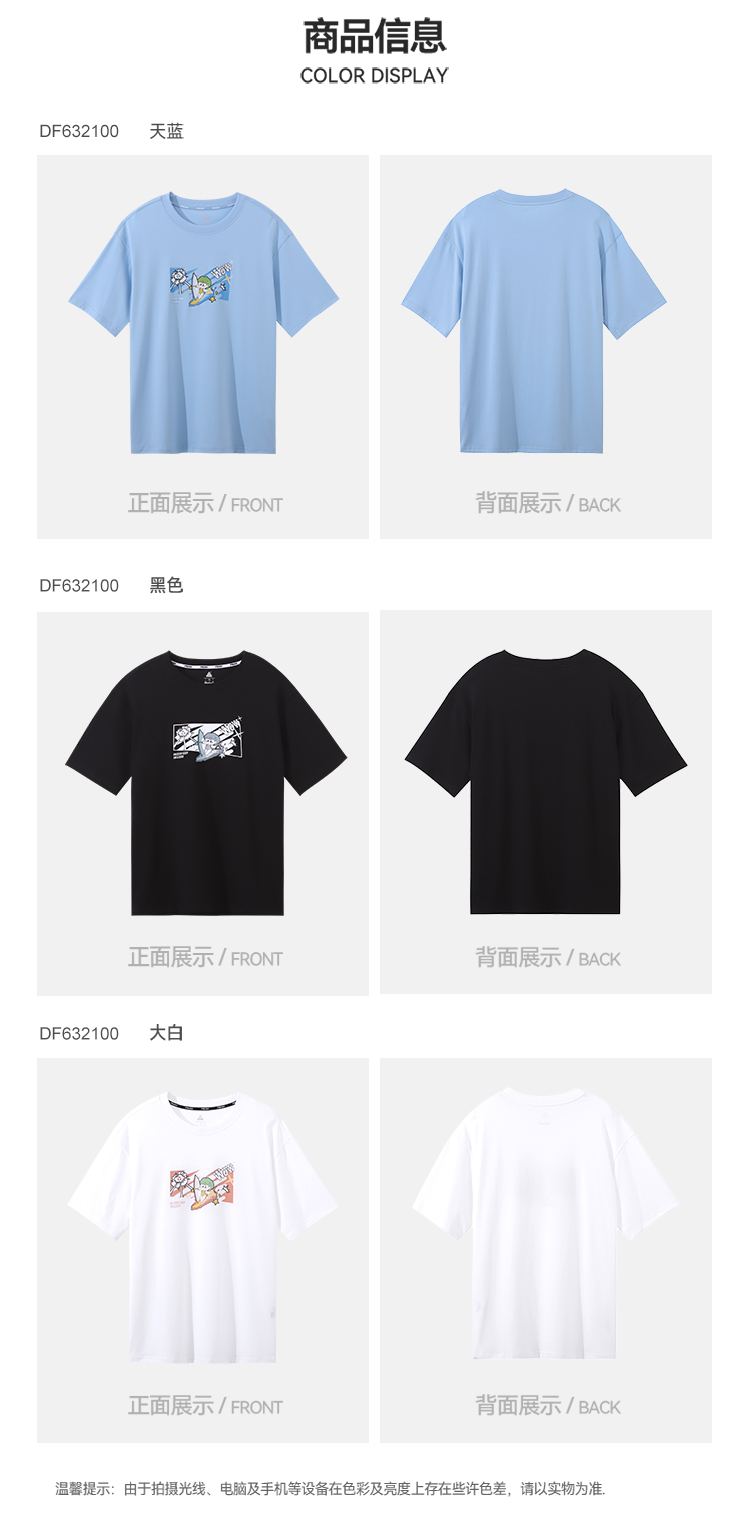 匹克【小海龟丽莎联名款】夏季短袖t恤男休闲百搭情侣款跑步运动上衣DF632100