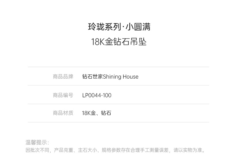 【克拉钻】【钜惠价】钻石世家 玲珑系列 克拉钻吊坠 18K金钻石吊坠 1克拉钻石戒指(该产品为特价产品,不与店内任何优惠活动叠加,且不参与线下门店换款服务)预计3个工作日发货