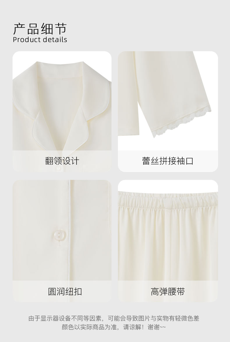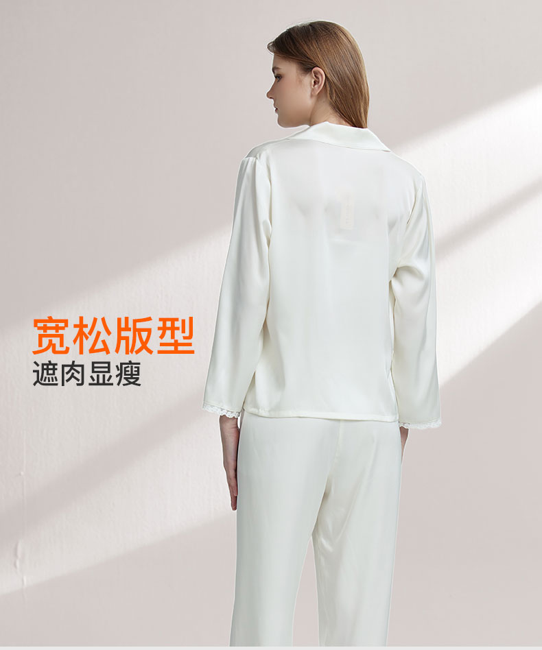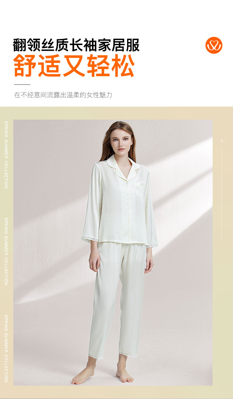 【7.5折限时特惠】【秀黛】女翻领丝质长袖套装H型慵懒精致女士春秋睡衣家居服W1551018T【门店同款】