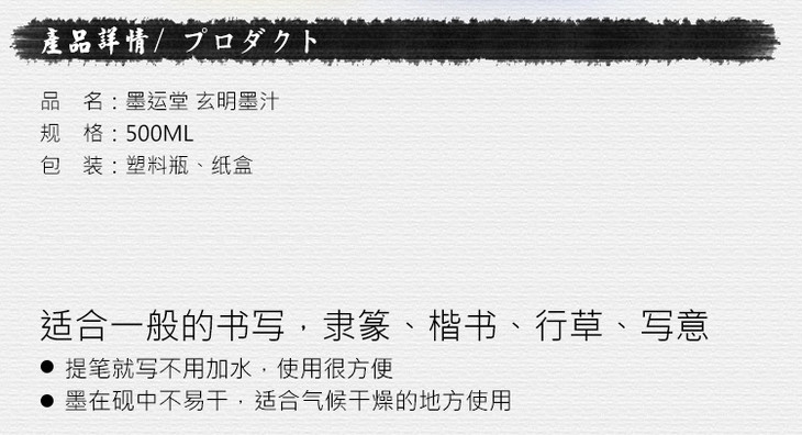 墨汁 墨运堂玄明中浓墨液 500毫升 书画墨汁