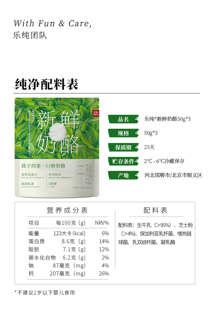 【顺丰包邮】乐纯 新鲜奶酪 150g/150g*3