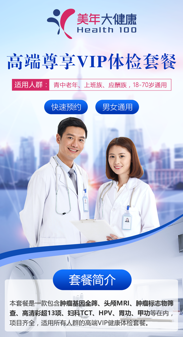【高端尊享VIP】美年大健康套餐,心脏彩超、头颅核磁、肺癌筛查等包含全身173项检查,急速预约,男女通用
