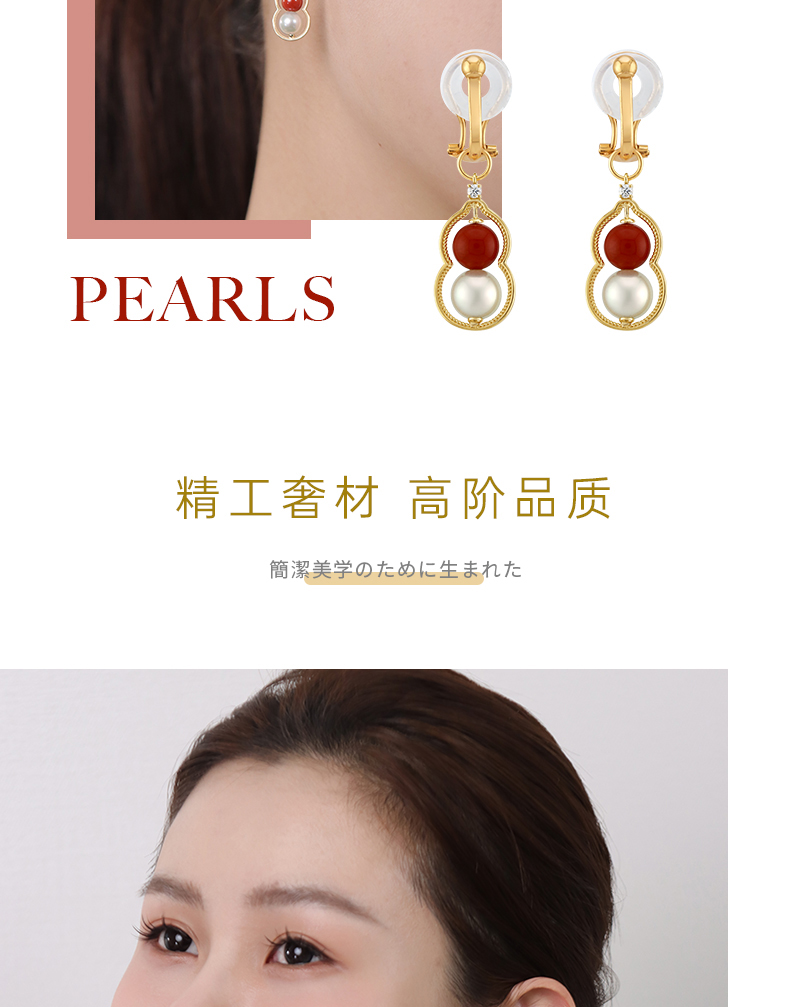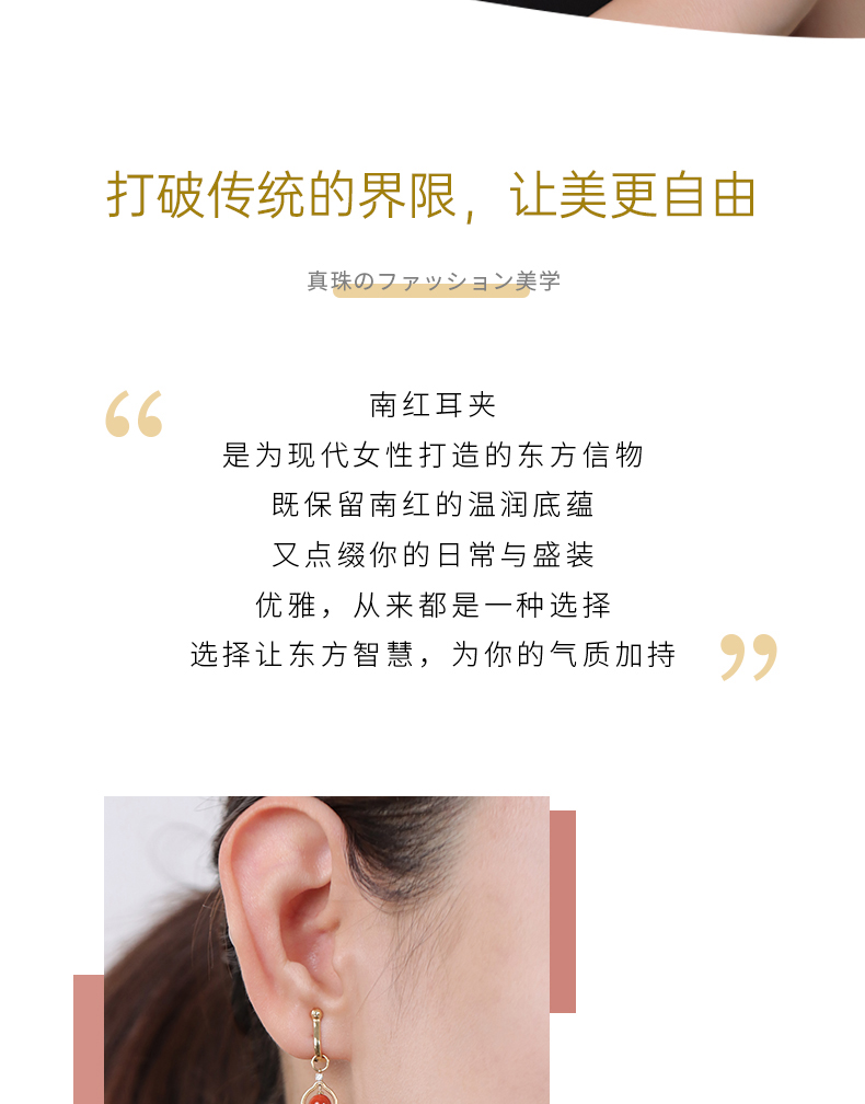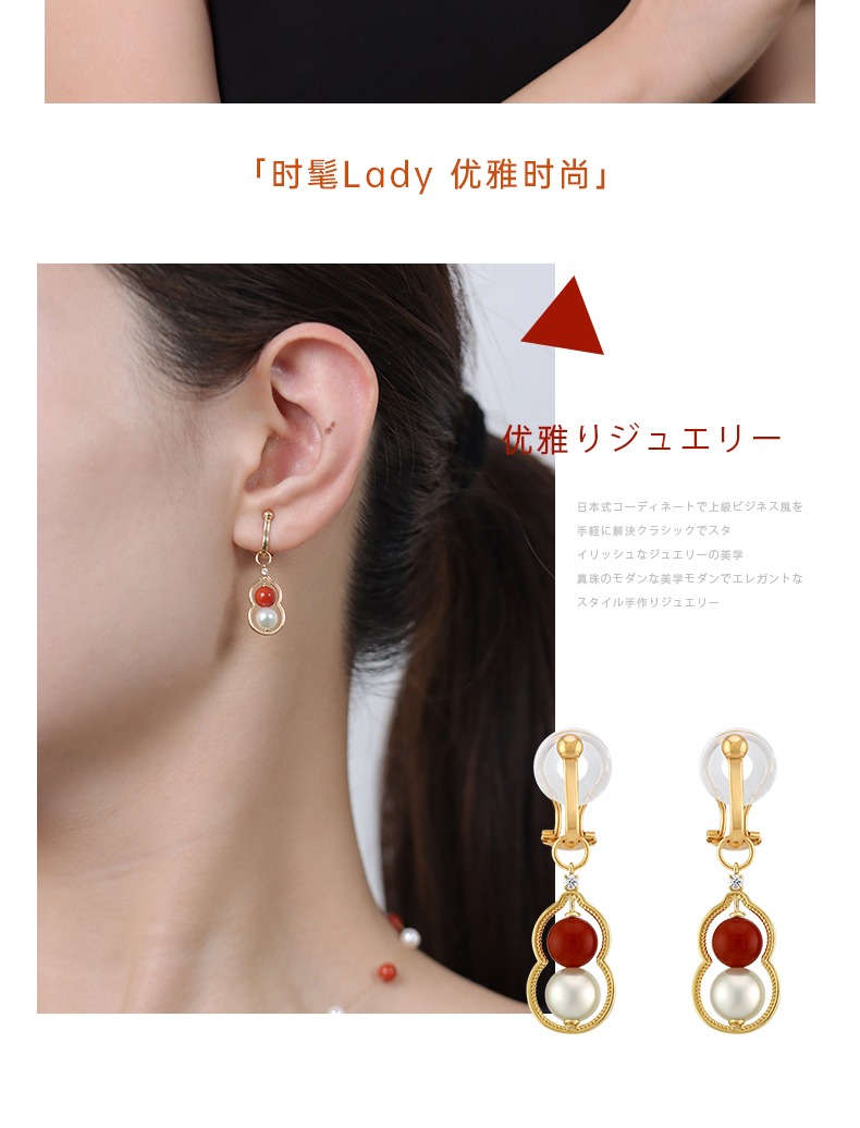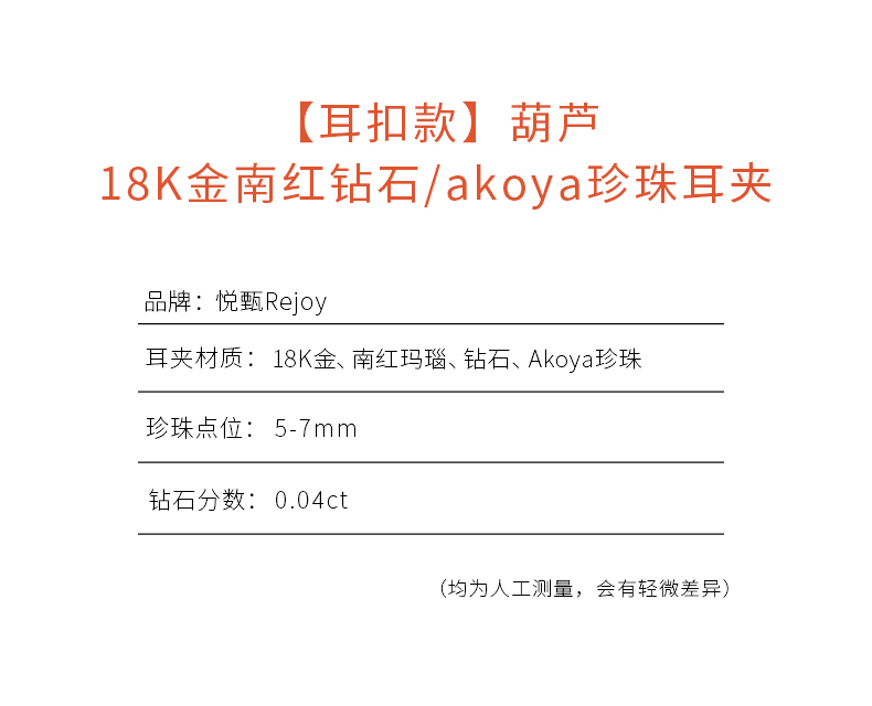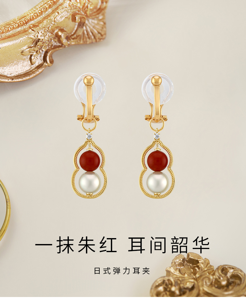 【天猫同款】葫芦-18k金南红钻石/akoya珍珠耳夹 5-7mm