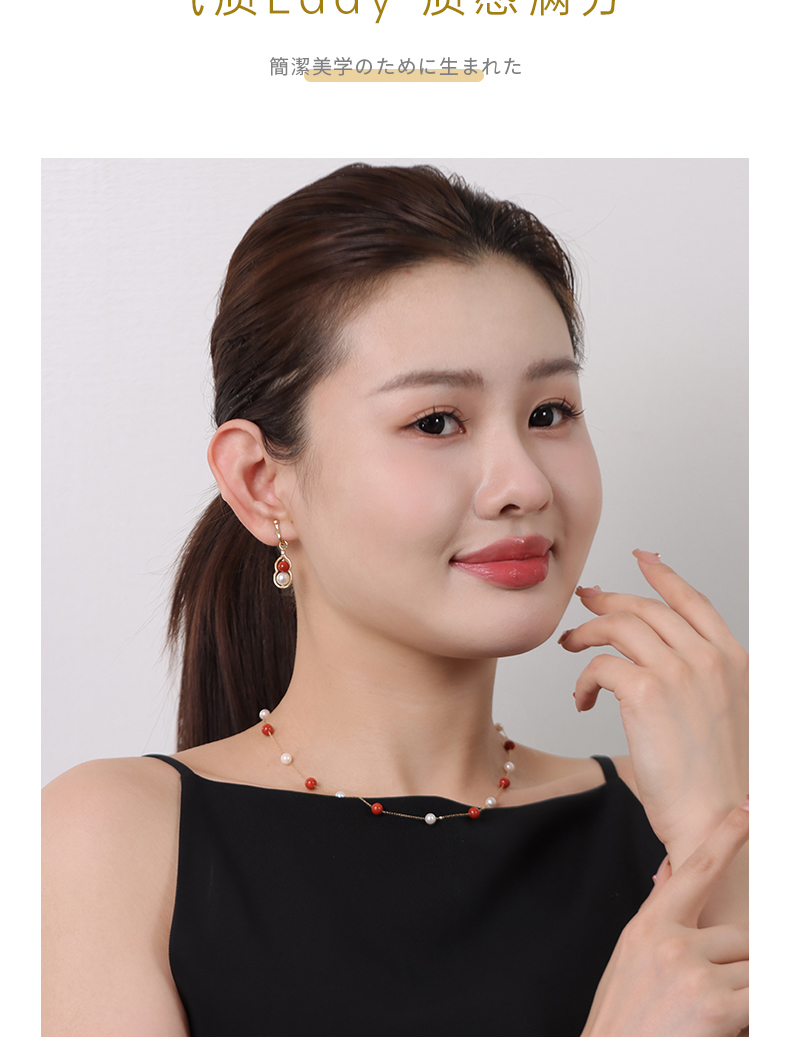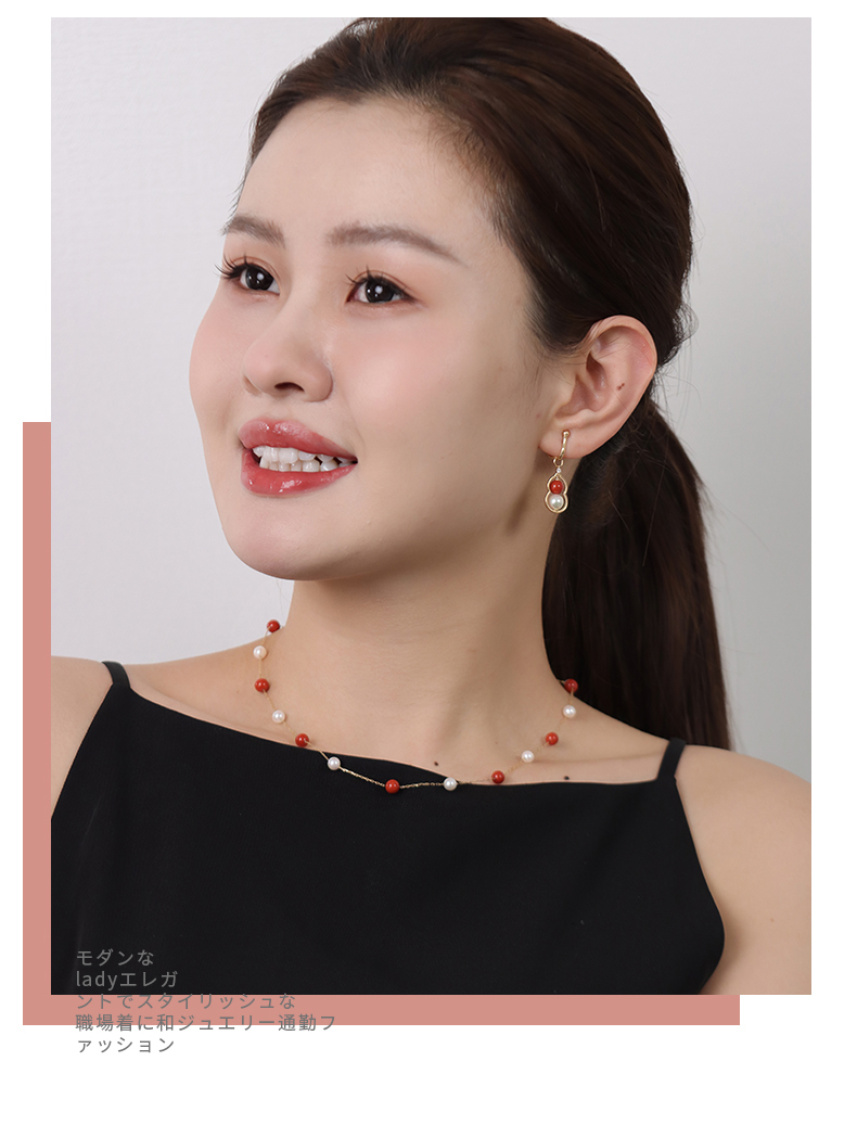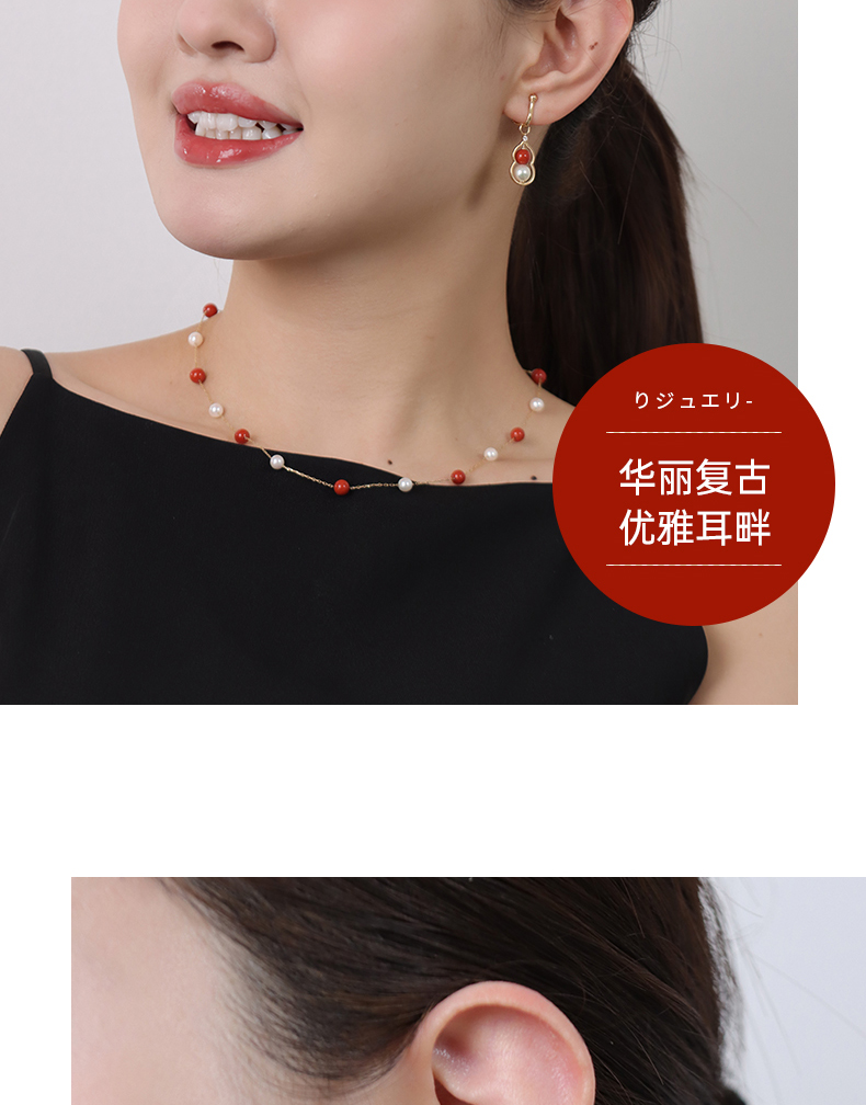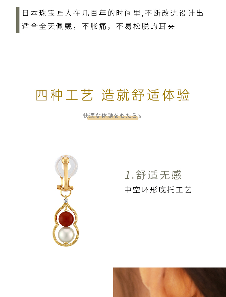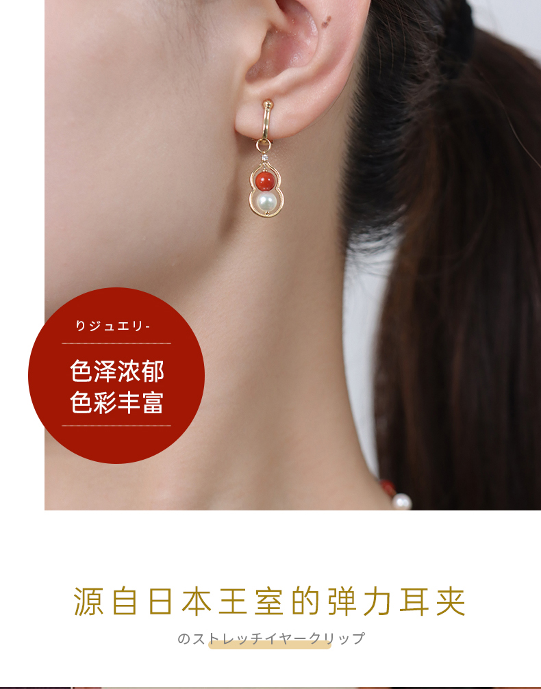 【天猫同款】葫芦-18k金南红钻石/akoya珍珠耳夹 5-7mm